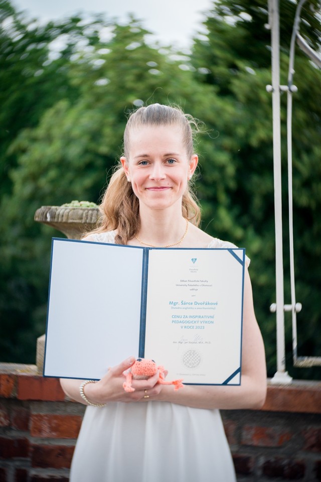 „Z ocenění mám obrovskou radost a bude pro mě motivací jak při další výuce, tak při dokončování doktorátu. Studující projevili ve mně osobně velkou důvěru a jsem jim za to vděčná. Nejdůležitější je ale pro mě to, aby své studium na anglistice hodnotili jako přínosné, v budoucnu z něj ve svém životě těžili a rádi na něj vzpomínali,“ uvedla. Ve svém doktorském výzkumu se věnuje anglofonní detektivní literatuře 21. století zasazené na skotské ostrovy. Zajímá se o zobrazení místa a kulturně-historického kontextu. „Ráda bych učila i v budoucnu. Doufám, že dokážu plně docenit, jak zodpovědná je to práce. Velmi mi záleží na vzdělávání jako takovém, domnívám se, že zejména citlivé a trpělivé vedení mladých lidí je dnes důležitější než kdy dřív, že jeho prostřednictvím budujeme lepší budoucnost,“ dodala.