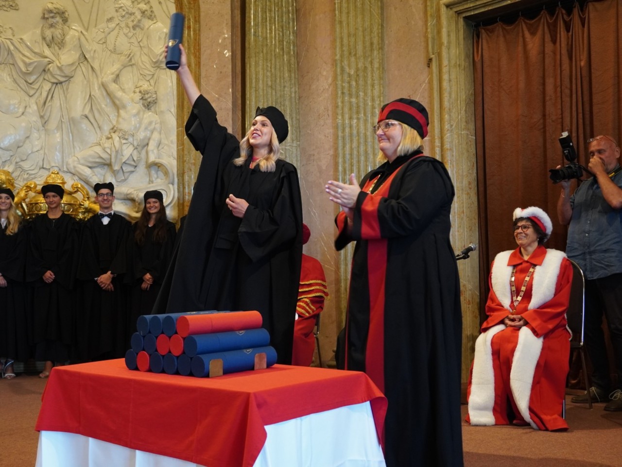 „Gratuluji vám k výjimečnému úspěchu. Jste připraveni k tomu, aby společnost těžila z vaší odbornosti, profesní empatie a zručnosti – a já jsem si jistá, že si povedete skvěle. Přeji vám hodně štěstí, pevné zdraví a mnoho úspěchů na vaší profesní cestě,“ přála během úvodních promocí novým zubním lékařům prorektorka UP pro komunikaci a studentské záležitosti Andrea Hanáčková.
