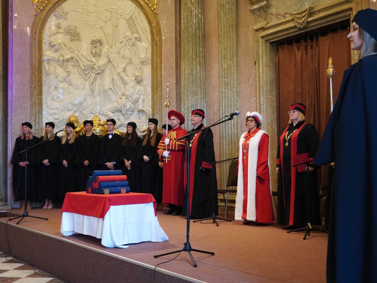 Tereza Svoreňová, která se ujala slova za jednu ze skupin absolventů, pak vypočítala, že během náročného studia zvládli 40 zkoušek, vypsali nejméně tisíc zvýrazňovačů, vypili mnoho litrů kávy i uronili nejednu slzu. „Obrovské poděkování patří zejména našim rodinám a blízkým, kteří nás podporovali a stáli při nás. Bez vaší péče, trpělivosti a lásky bychom to těžko dokázali. A to jste museli neustále poslouchat, jak si správně čistit zuby. Srdečné poděkování patří i pedagogům. Věříme, že vše, co jste do nás vložili, vrátíme nejen vám, ale především těm, kteří to budou potřebovat,“ uvedla čerstvě dostudovaná zubní lékařka s tím, že pět let studia byla jízda, na kterou bude ráda vzpomínat.