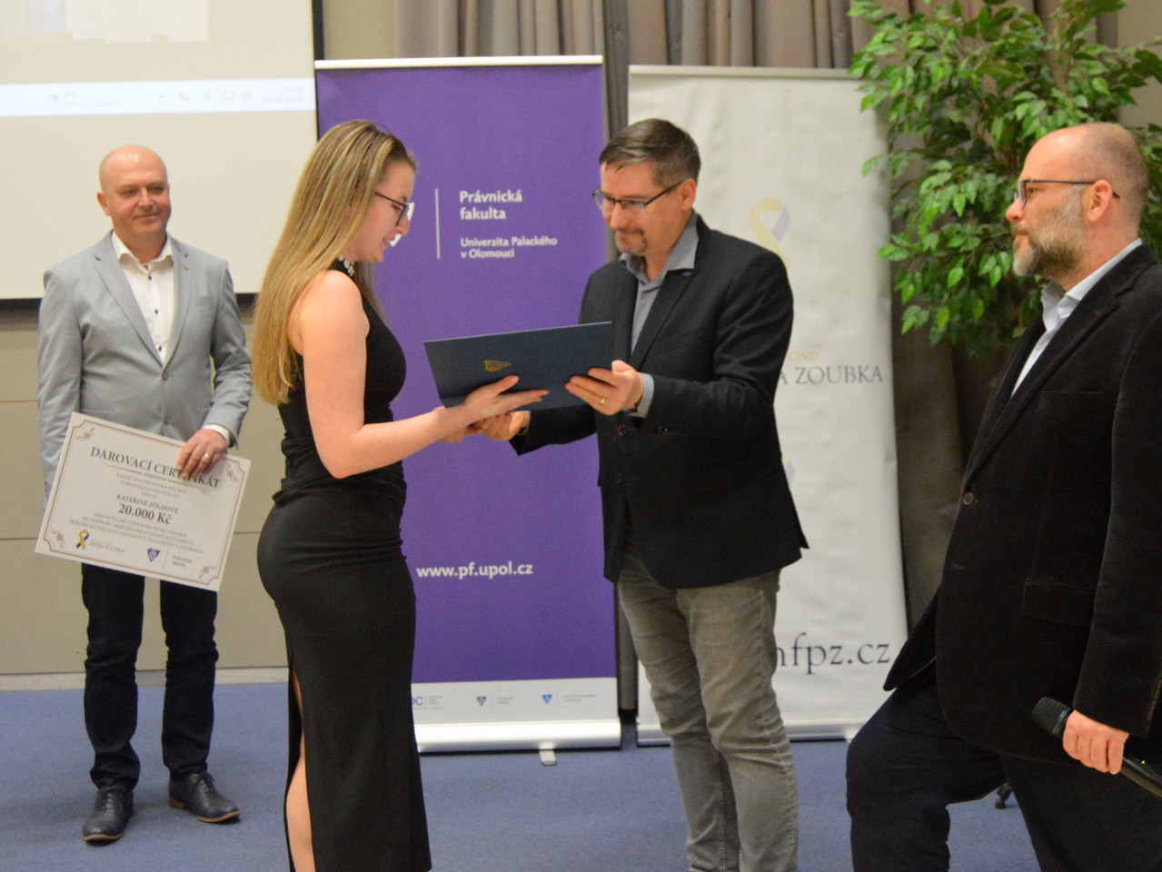 Na Stipendium Petra Zoubka, které podporuje mimořádně nadané studenty Právnické fakulty UP, letos dosáhly tři studentky. Ocenění získaly Kateřina Havránková, Daniela Uramová a Kateřina Zöldová, které studují magisterský program Právo a právní věda. Stipendium uděluje fakulta společně s Nadačním fondem Petra Zoubka jednou ročně.