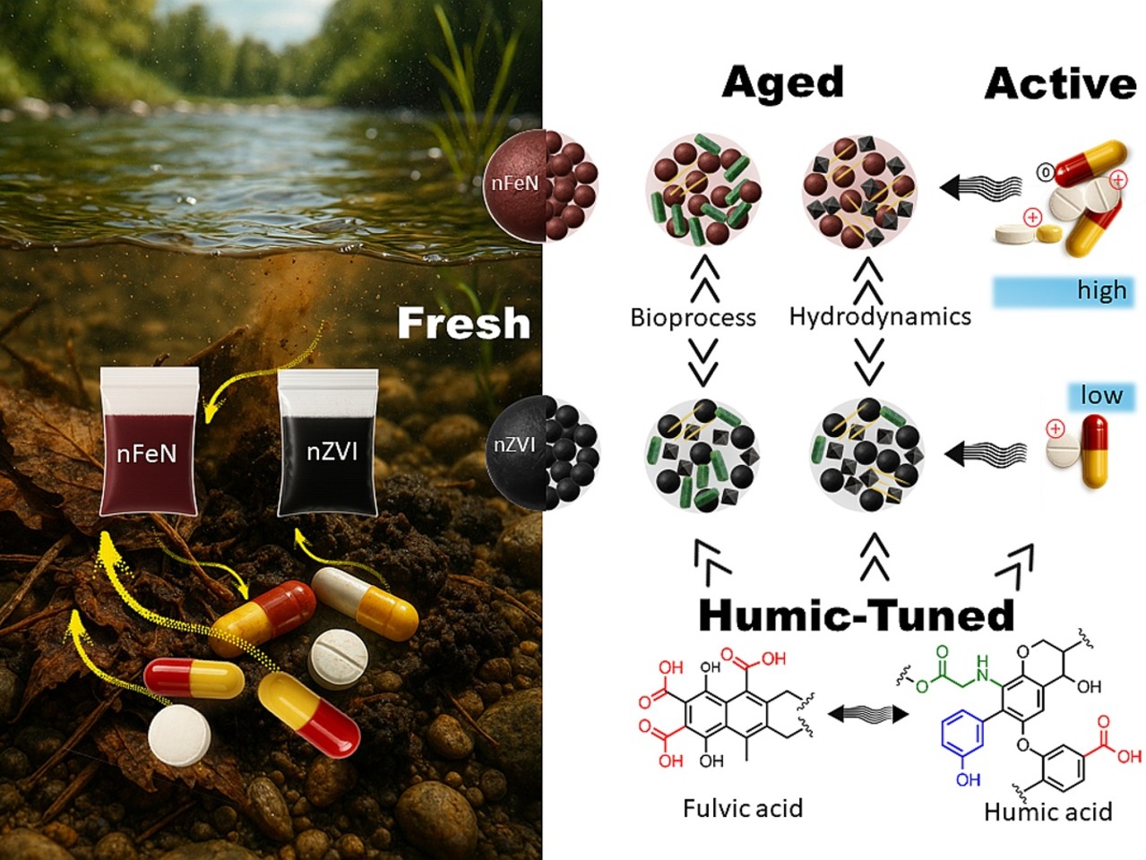 Studie srovnávala inovativní nanočástice nitridu železa (nFeN) s běžně používanými nanočásticemi nulmocného železa (nZVI) v povrchových vodách kontaminovaných nežádoucími farmaceutiky.