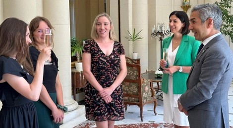 Silvie Chlumcová, posluchačka oboru Mediální studia se specializací na kulturální studia v navazujícím magisterském programu na FF UP, strávila díky projektu Ambassador for A Day jeden den s Mattem Fieldem, velvyslancem Velké Británie v České republice. Kromě toho, že britského velvyslance celý den tzv. stínovala, absolvovala i setkání s předsedkyní Poslanecké sněmovny Parlamentu ČR Markétou Pekarovou Adamovou a americkým velvyslancem Bijanem Sabetem. Navštívila dále komunitní centrum neziskové organizace Život 90 a hovořila s expertkami z NATO a oblasti transatlantických vztahů. O své zkušenosti s uvedeným projektem pak večer v rámci slavnostní recepce mluvila před hosty.