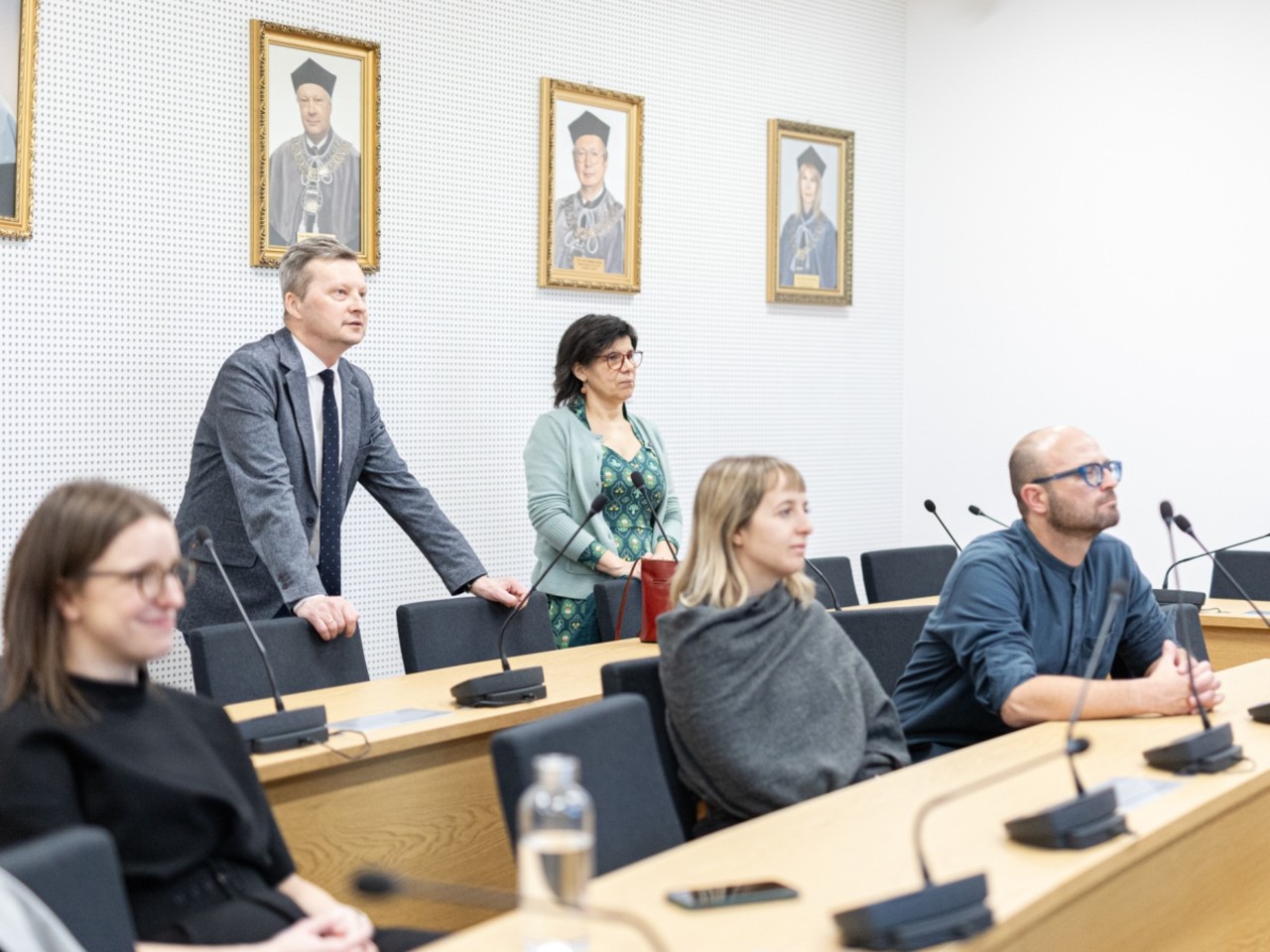 Rector Dobrowolski and his four-member vice-rector team are present at all screenings of the festival films, discussing them passionately. As a geographer, the rector very much enjoyed their themes of sustainability and climate change. As a researcher, he has himself twice visited Svalbard, the subject of one of the films, and recognised many locations in the film. He raises a glass of wine and makes a toast to the exhibition that has just opened.
