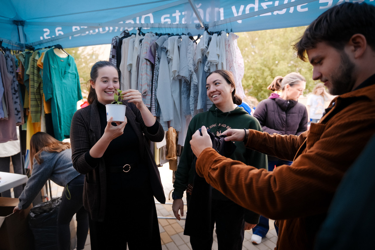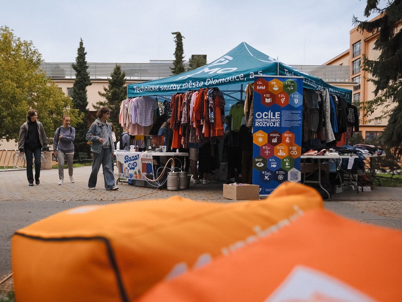 Během úterního odpoledne pak ožilo prostranství před hlavní menzou Bazarem UP, který umožnil studentům i zaměstnancům darovat a zdarma získat oblečení, knihy či kuchyňské vybavení; část nabídky navíc pocházela z olomouckého charitního reuse centra Druhá Dobrodruhá.
