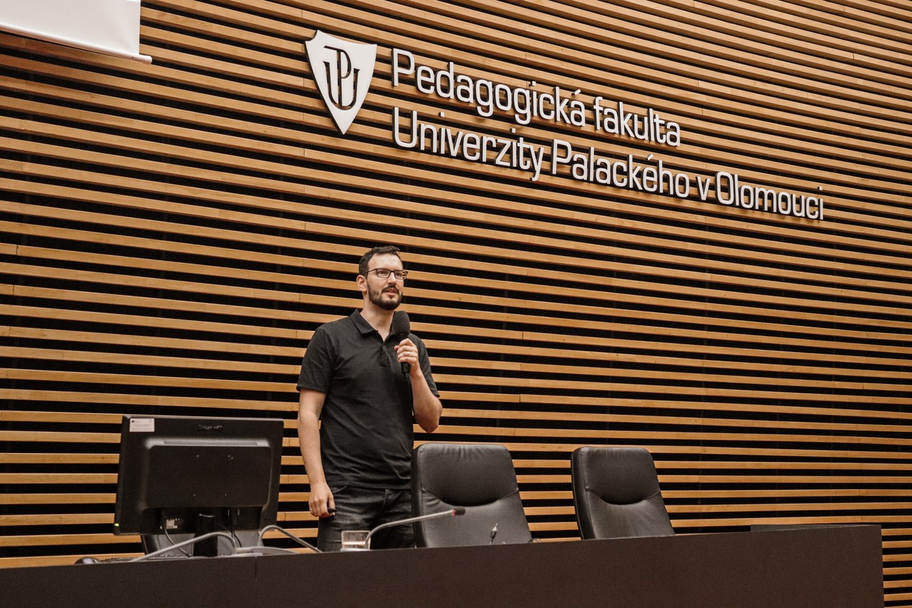 V aule Pedagogické fakulty UP poutavě hovořil publicista a popularizátor kritického myšlení Patrik Kořenář. Přednášel o tom, jak rozeznat pravdivé informace od zavádějících, zároveň představil i klíčové principy ověřování informací. Ve své přednášce se věnoval i dezinformacím a hoaxům a mimo jiné i popsal, jak fungují mediální algoritmy. Publiku pak také přiblížil, jak lidský mozek manipulaci často nahrává. Přednášku si můžete poslechnout zde.