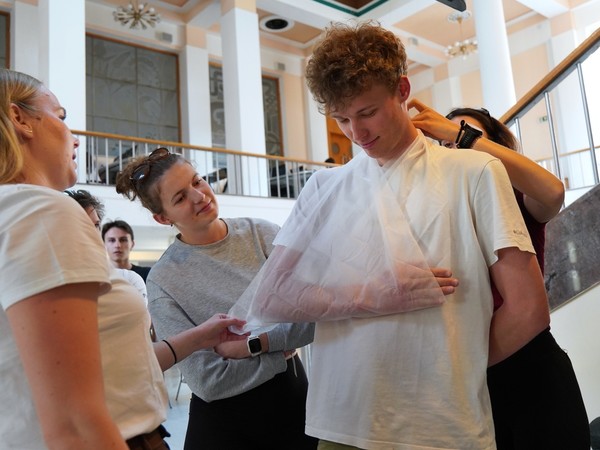Účastníky čeká úvodní teoretická přednáška, během níž se seznámí se základními principy první pomoci. Poté se rozdělí do skupin a projdou pět praktických stanovišť. „Na nich si osvojí konkrétní dovednosti, jako jsou například obvazové techniky, kardiopulmonální resuscitace nebo použití defibrilátoru. Na závěr si ověří získané znalosti a dovednosti v simulacích konkrétních krizových situacích, do nichž se mohou v běžném životě dostat,“ přiblížil za pořadatele Ondřej Hubálek, student 4. ročník Všeobecného lékařství.