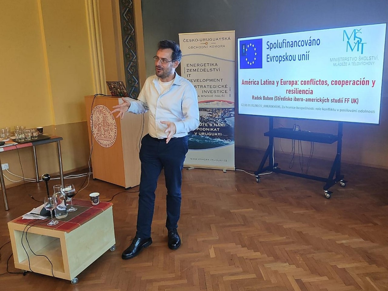Na snímku Radek Buben. Přednáší na konferenci 200 let od vyhlášení nezávislosti Uruguaye.