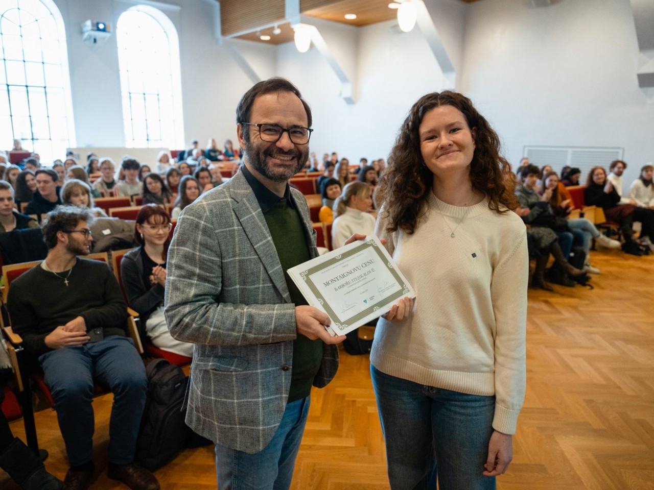 Odbornou porotu šestého ročníku soutěže o Montaignovu cenu za nejlepší středoškolský esej o románských literaturách přesvědčila Barbora Stejskalová z Gymnázia Židlochovice. V soutěži Filozofické fakulty UP zvítězila s esejem Křehká lidskost. Čestné uznání letos získal Matthias Brochot z Malostranského gymnázia v Praze za esej Vizionář (a) milionář aneb Vernova skrytá proroctví.