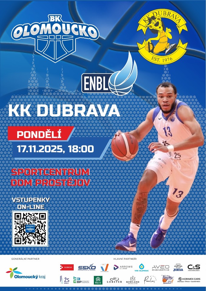 Basketbalový klub BK Olomoucko v uplynulé sezoně 2024/2025 dosáhl historického úspěchu – 3. místa v Kooperativa NBL, a tím i nominace do evropských pohárů. Nyní zve všechny příznivce na mezinárodní utkání BK Olomoucko vs. BC Dubrava (Chorvatsko), které se uskuteční 17. 11. 2025 od 18:00 v DDM Prostějov.