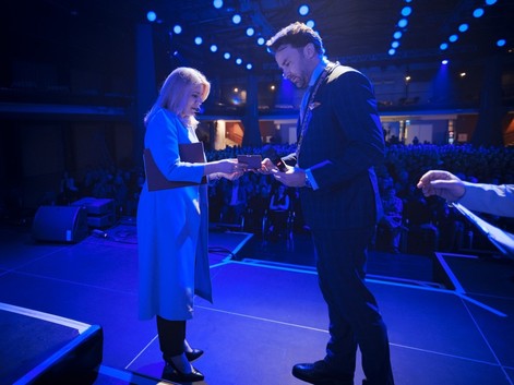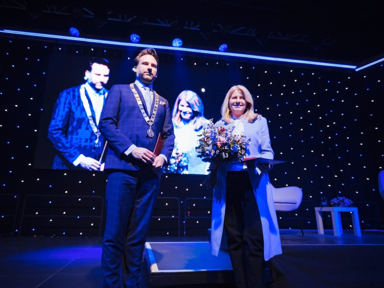 Na závěr večera Zuzaně Čaputové poděkoval rektor Michael Kohajda a předal jí pamětní medaili Univerzity Palackého.