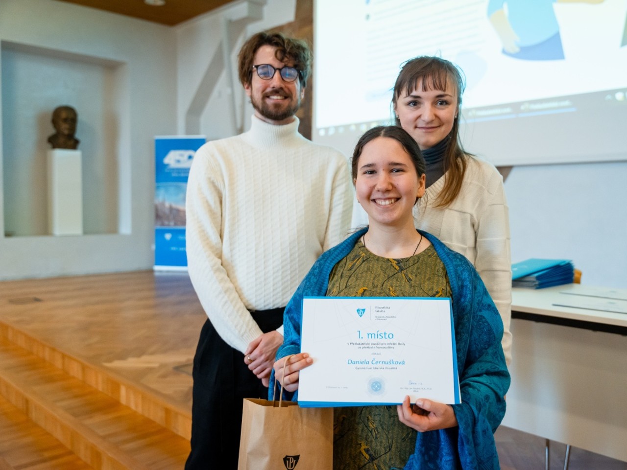 Také Daniela Černušková společně s Anežkou Maríí Pospíšilovou, jež získaly první a druhé místo za překlad z francouzštiny se profesně této disciplíně věnovat zatím nechtějí. „Francouzštinu se učím osmý rok, baví mě, ale spíš bych ráda studovala Matematicko-fyzikální fakultu UK v Praze. Nad profesí zatím moc nepřemýšlím, matematika mě přitahuje kvůli způsobu myšlení,“ uvedla vítězka překladu z francouzštiny Daniela Černušková, studentka z Gymnázia Uherské Hradiště. „Moje máme je Belgičanka, i proto umím dobře francouzsky, je to vlastně můj rodný jazyk. Baví mě francouzsky si číst a v tom hodlám i pokračovat, studovat tento jazyk ale asi nebudu,“ doplnila Anežka Marie Pospíšilová, studentka Gymnázia Olomouc-Hejčín.