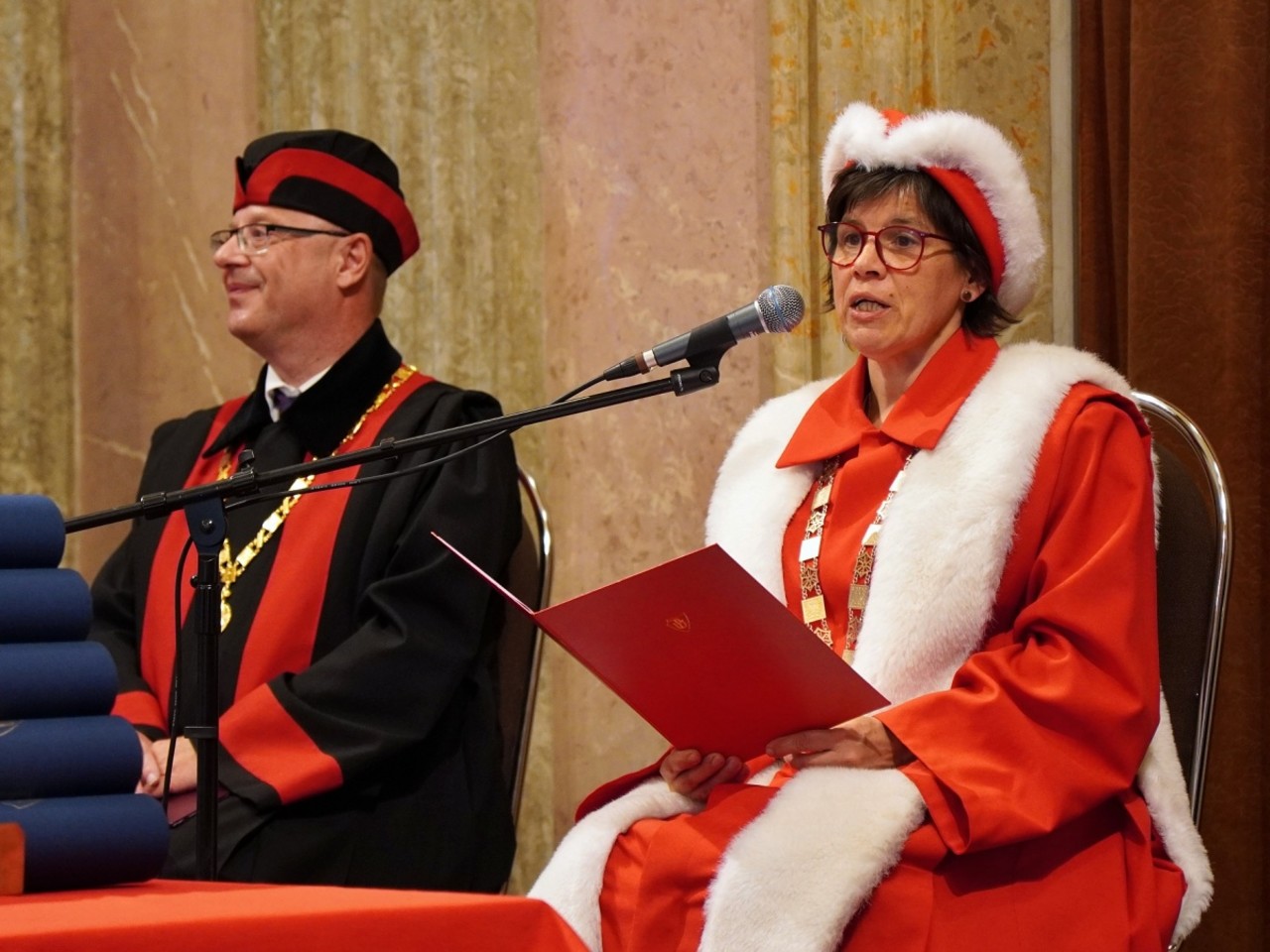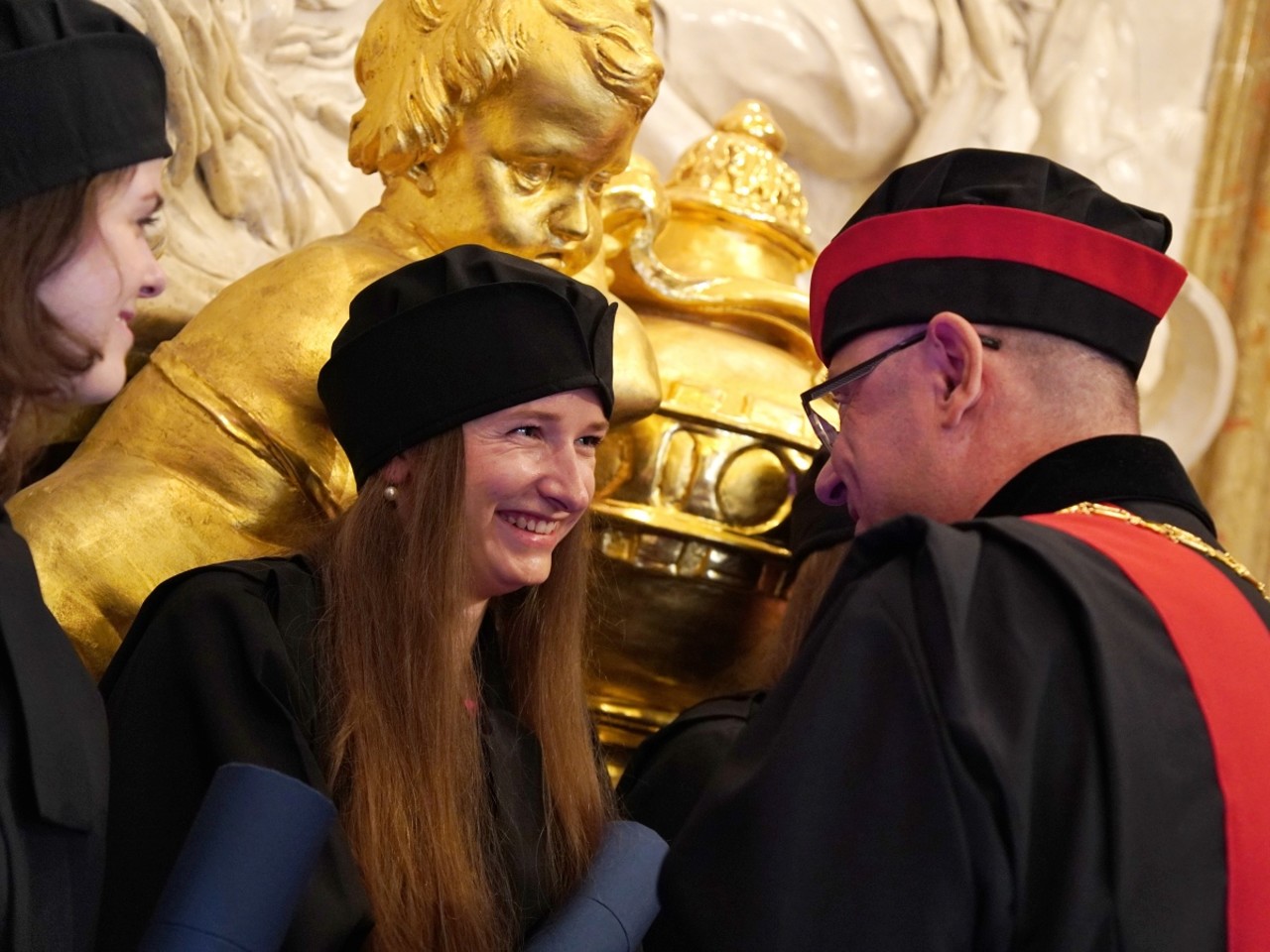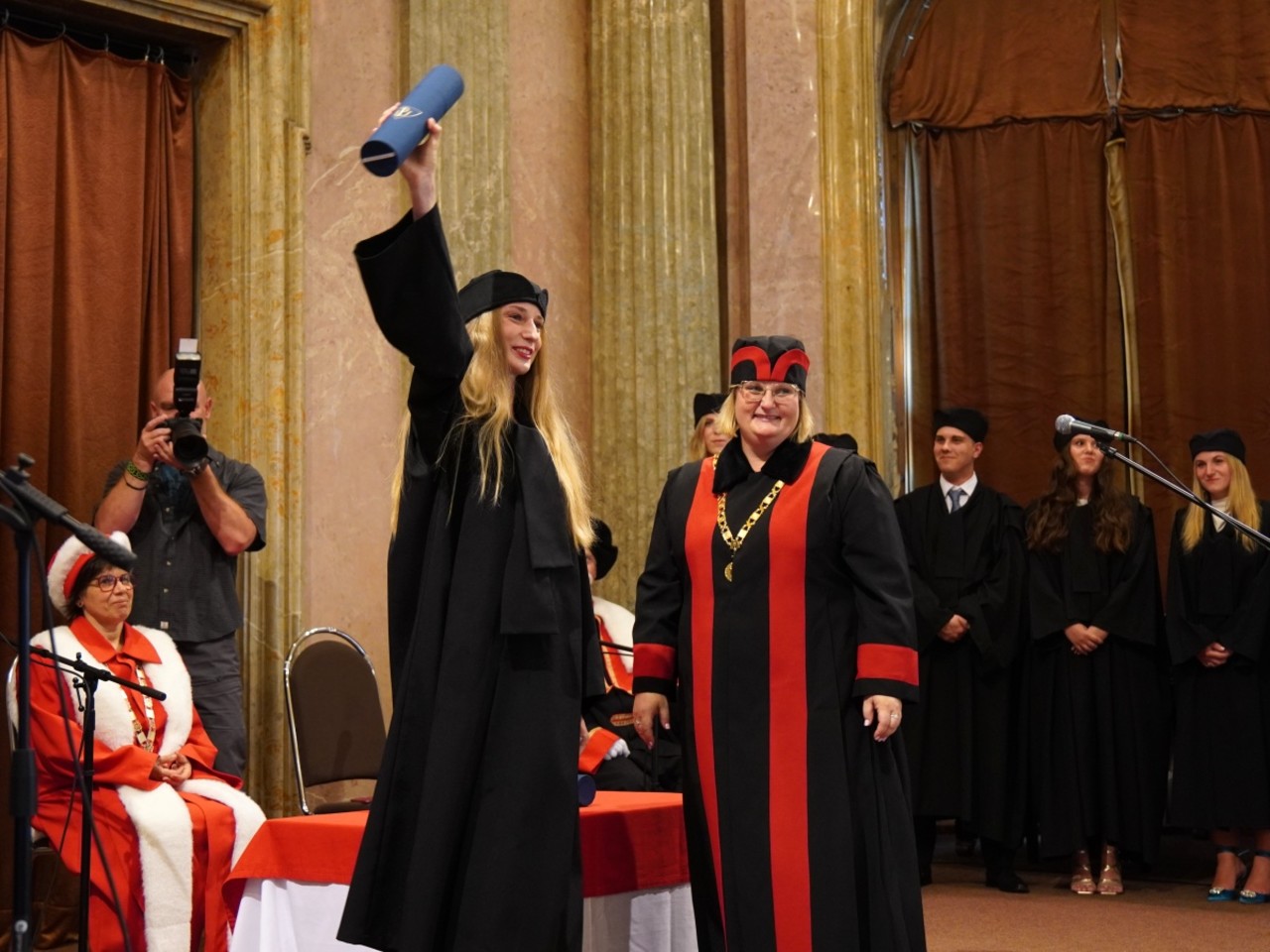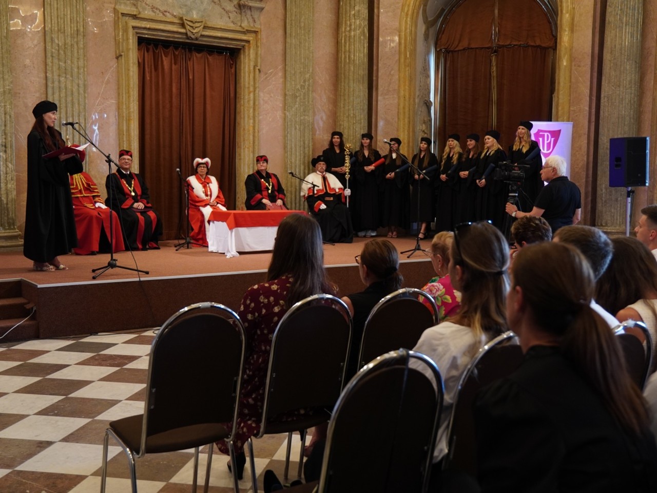 „Přeji vám na vaší profesní dráze pevné zdraví, dobrá rozhodnutí a štěstí na dělné a spolehlivé týmy, jichž budete součástí a možná brzy i hlavou. Myslete ale prosím i na rovnováhu ve svém osobním životě, udržujte si duševní svěžest, radost a vyrovnanost,“ uvedla prorektorka pro komunikaci a studentské záležitosti Andrea Hanáčková ve své krátké řeči k čerstvým zubním lékařkám a lékařům během jedné z prvních promocí. Připomněla také, že díky registraci do Klubu absolventů UP mohou i nadále zůstat s univerzitou v kontaktu.
