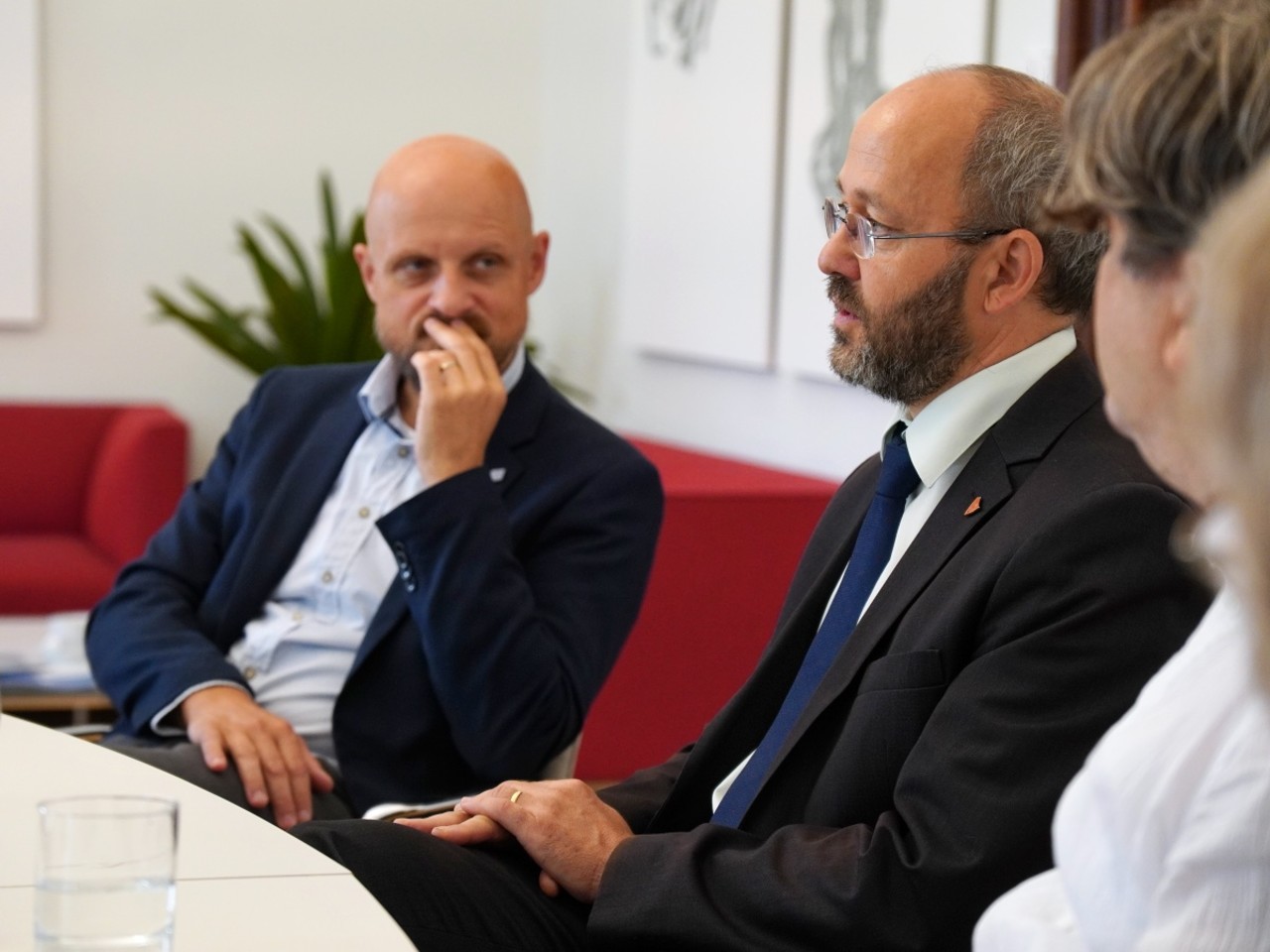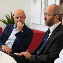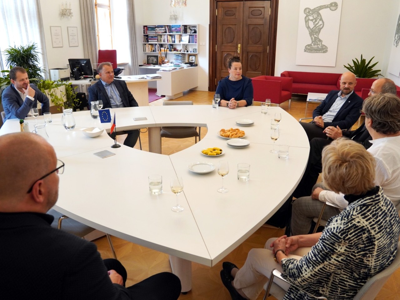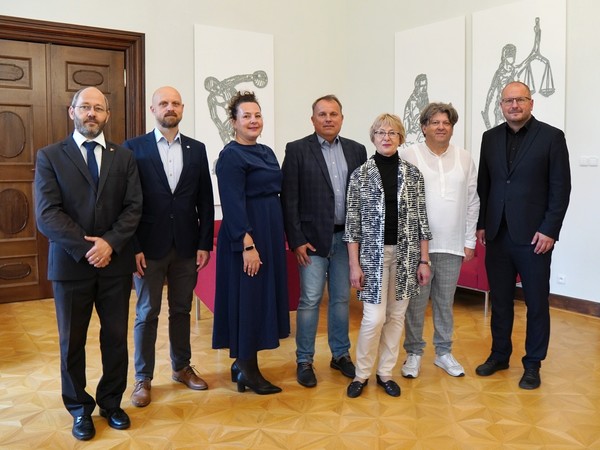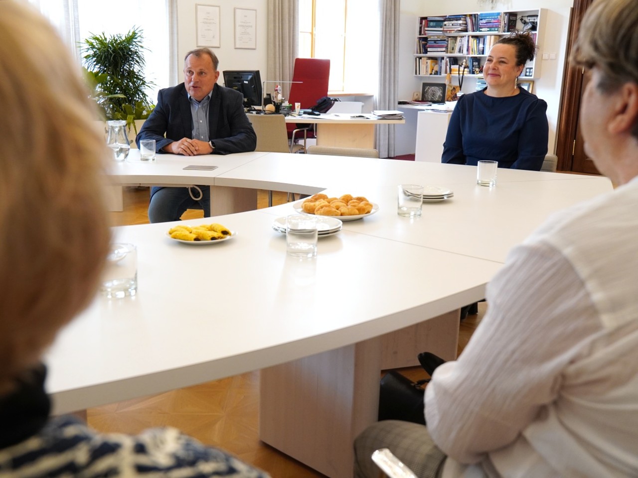 Rektor Martin Procházka společně s prorektorkou pro vědu a výzkum Lucií Plíhalovou osobně pogratuloval nově jmenovaným profesorům a profesorce na UP k dosažení nejvyššího vědecko-pedagogického titulu a připil si s nimi na další, nejen pracovní úspěchy. Neformálního setkání v rektorově pracovně se zúčastnili Alla Arkhanhelska a Ondřej Jakubec z filozofické fakulty, přírodovědci Jan Soubusta a Zhivorad Tomovski a Dušan Klos z lékařské fakulty. S rektorem a prorektorkou hovořili o své odborné práci a nejbližších plánech, také o situaci ve svých oborech. Ze setkání se naopak omluvili lékaři Milan Sova a Tomáš Skála, Ludmila Veselovská z FF UP a děkan Pedagogické fakulty Ostravské univerzity Daniel Jandačka, který profesuru absolvoval na UP. Všichni zmínění převzali své profesorské jmenovací dekrety během červnového slavnostního aktu v Praze, při té příležitosti jsme nově jmenované profesory představili prostřednictvím medailonků zde.