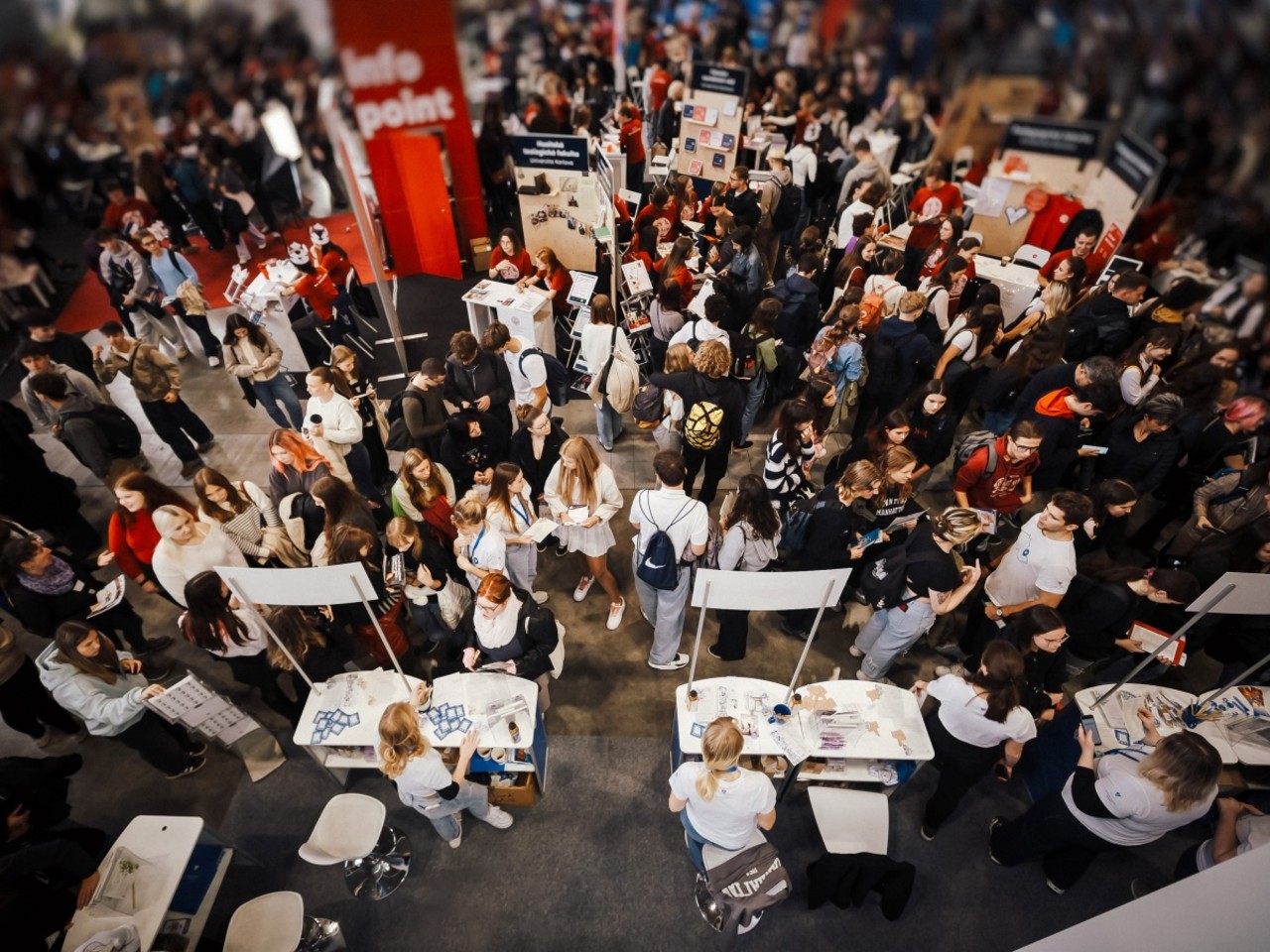 Na brněnském výstavišti se koná největší tuzemský veletrh pomaturitního vzdělávání Gaudeamus Brno a Univerzita Palackého je tradičně u toho. Její dvoupatrovou expozici rozprostírající se na sto třiceti metrech čtverečních navštíví do pátku až dvanáct tisíc zájemkyň a zájemců o studium. Denně na jejich zvídavé dotazy reagují více než čtyři desítky studujících ze všech fakult. Právě veletrhy typu Gaudeamus jsou pro budoucí vysokoškoláky z hlediska rozhodování často stěžejní.