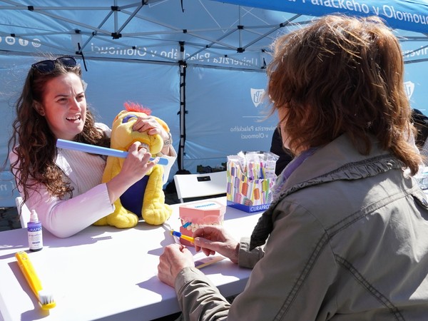 „Umíte si správně vyčistit zuby?“ Touto otázkou zvali studentky a studenti Zubního lékařství na Lékařské fakultě UP ke svému stánku na Dolním náměstí, kde v rámci akce Ve zdravé Olomouci zdravý zub zájemcům mladším i starším poradili s tím, jak co nejlépe pečovat o chrup a ústní zdraví a jaké pomůcky jsou k tomu nejvhodnější. Již tradiční preventivní akci připravilo olomoucké Sdružení studentů stomatologie ČR.