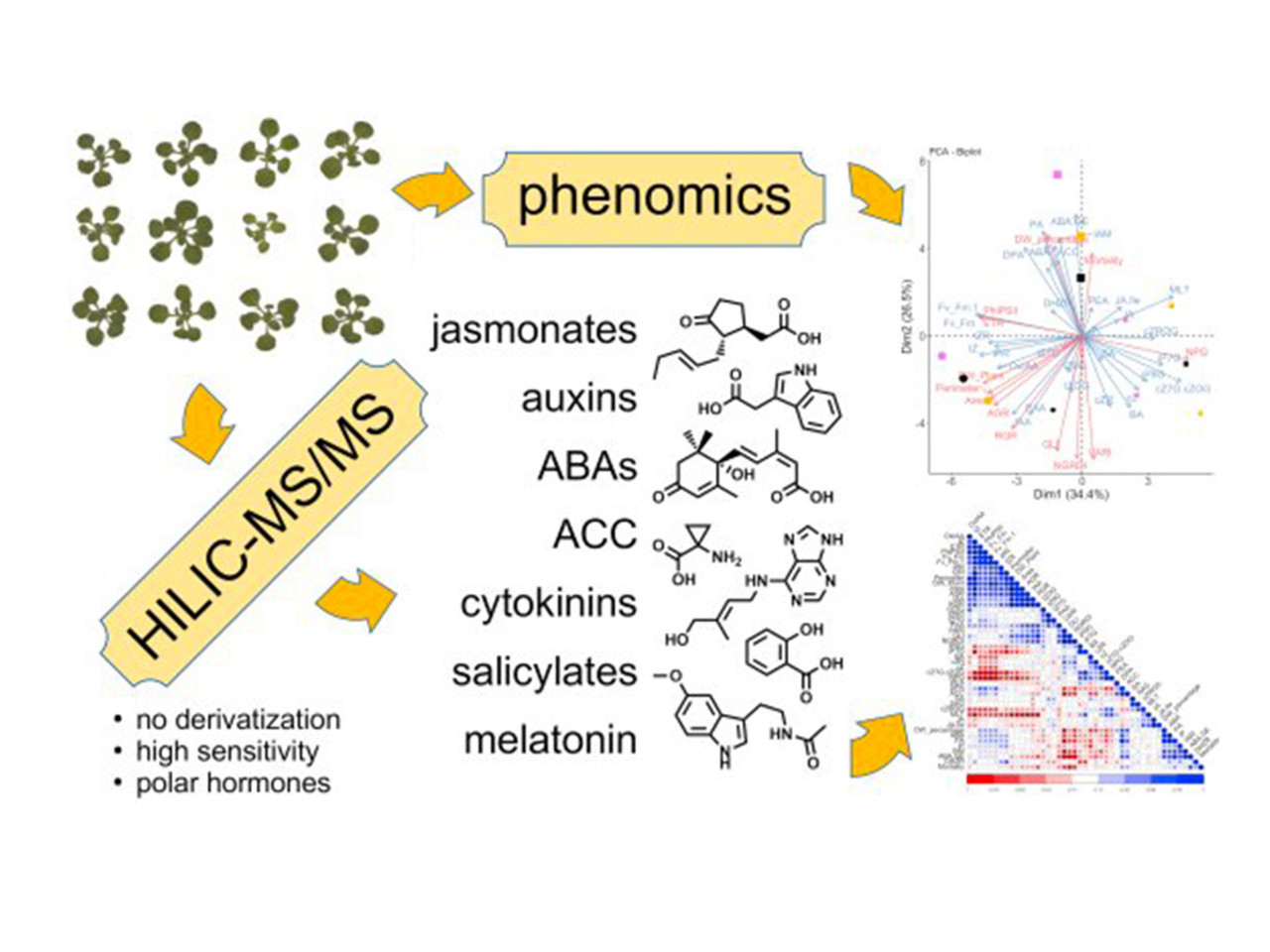 Novou metodu pro jednoduchou a rychlou analýzu rostlinných hormonů vyvinuli vědci z CATRIN Univerzity Palackého a olomouckého pracoviště Výzkumného ústavu rostlinné výroby. Vytvořili a ověřili postup, jenž využívá méně obvyklý typ chromatografie (HILIC), která umí analyzovat více různých skupin hormonů najednou, navíc bez nutnosti složitých příprav vzorků. Kombinací této metody s velkokapacitní fenotypizací rostlin získali nový nástroj pro studium interakce rostlin s prostředím. Výsledky výzkumu publikovali v časopise The Plant Journal.