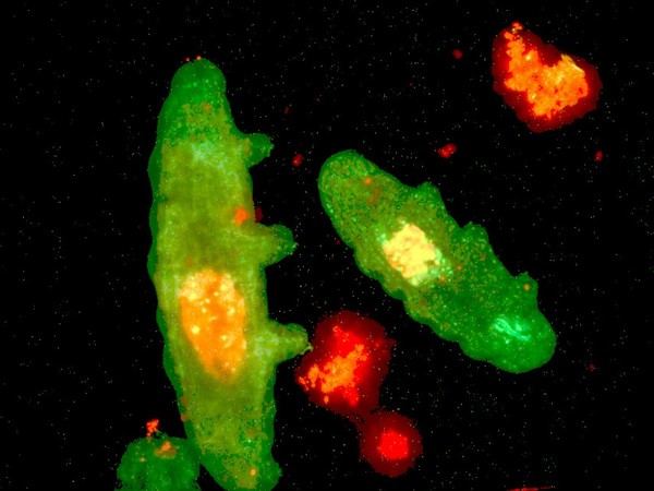 Autofluorescence želvušek rodu Paramacrobiotus po ozáření laserem. Foto: Archiv PřF UP