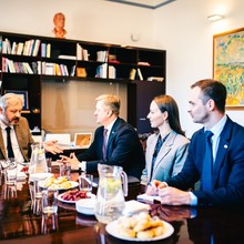 Dosavadní spolupráce s Ukrajinou v oblasti vysokoškolského studia a její další možnosti. A taky všemožná pomoc studentům a studentkám z Ukrajiny nejen v rámci studia, ale i v životě samém. Především o těchto tématech se vedla debata mezi rektorem UP Michaelem Kohajdou a velvyslancem Ukrajiny Vasylem Zvaryčem. Schůzky se zúčastnily také Ivona Barešová, prorektorka pro mezinárodní vztahy UP, a Naděžda Šišková, členka katedry mezinárodního a evropského práva z PF UP. Společně s ukrajinským velvyslancem byli v pracovně rektora také tajemník a tajemnice velvyslanectví Andrii Korol a Nadiia Malovana.