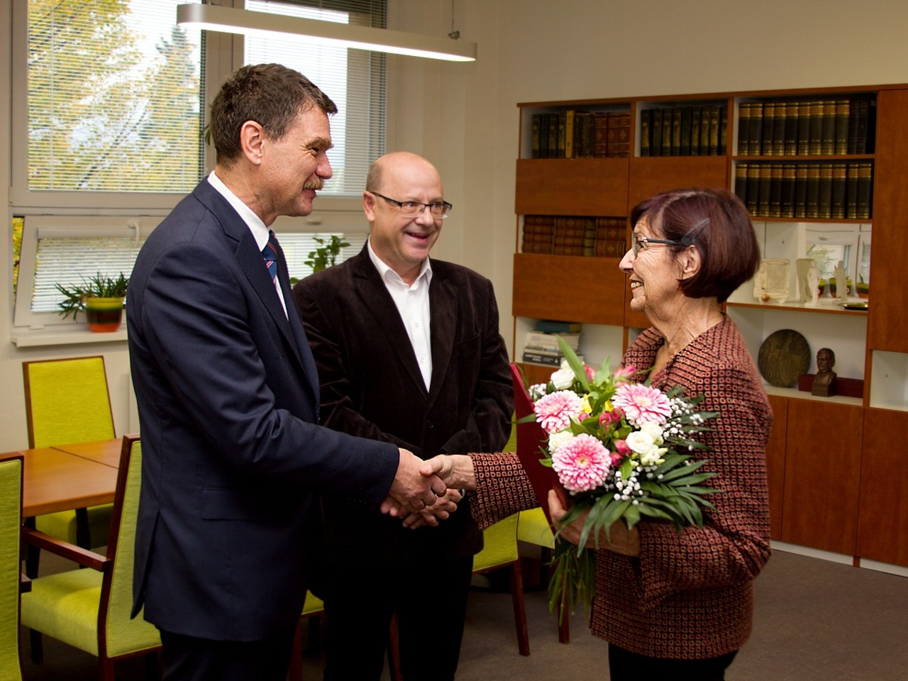Paní docentko, děkujeme za Vaši 61letou práci pro náš ústav, kde nám dosud pomáháte, a k Vašemu životnímu jubileu Vám přejeme všechno nejlepší a pevné zdraví a hodně štěstí a elánu do dalších let.