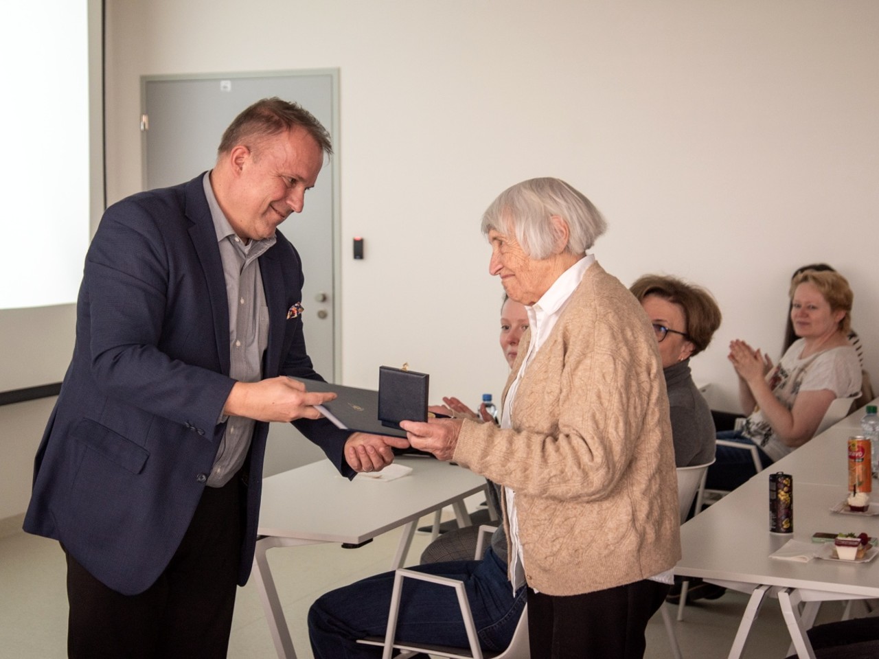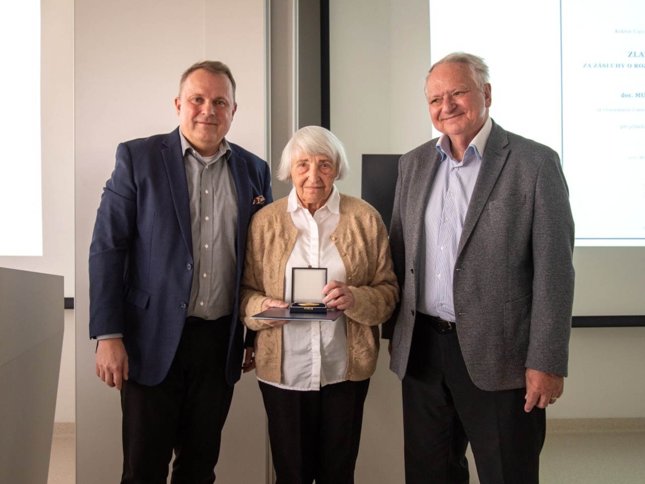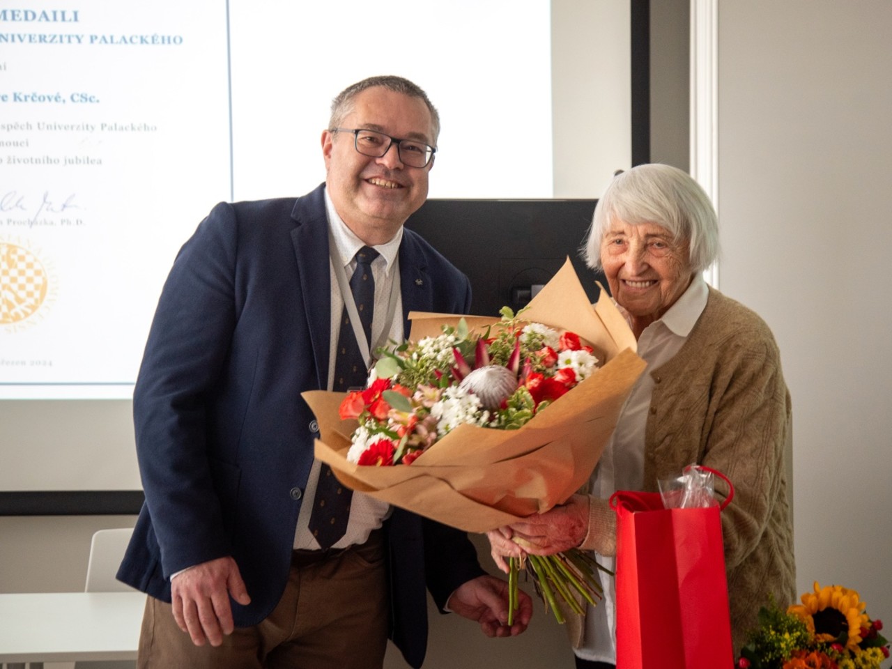 U příležitosti významného životního jubilea udělil rektor UP Martin Procházka zlatou medaili Za zásluhy o rozvoj UP lékařce a pedagožce Věře Krčové. Docentka Krčová je téměř celý svůj život spjata s Lékařskou fakultou UP a olomouckou fakultní nemocnicí, studium medicíny završila promocí v roce 1958. Po čtyřleté praxi v Hranicích nastoupila na I. interní kliniku v Olomouci a atestovala se ve vnitřním lékařství. Postupně se zaměřila na své hlavní téma – problematiku hemostázy, srážení krve. V roce 1988 habilitovala a po vzniku Hemato-onkologické kliniky FN Olomouc se stala členkou jejího týmu a stála u zrodu a rozvoje moderní hemokoagulační laboratoře. Medaili rektor jubilantce předal během neformálního setkání na klinice, pevné zdraví do dalších let Věře Krčové popřáli také současný a emeritní přednosta kliniky Tomáš Papajík a Karel Indrák, také další kolegové a kolegyně.