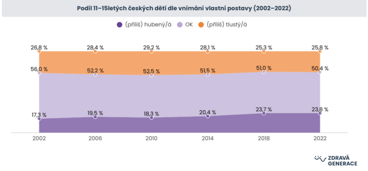 - Štíhlí realisté: Děti s přiměřenou hmotností, které se cítí dobře ve svém těle (67 %).