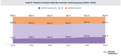 - Štíhlí realisté: Děti s přiměřenou hmotností, které se cítí dobře ve svém těle (67 %).