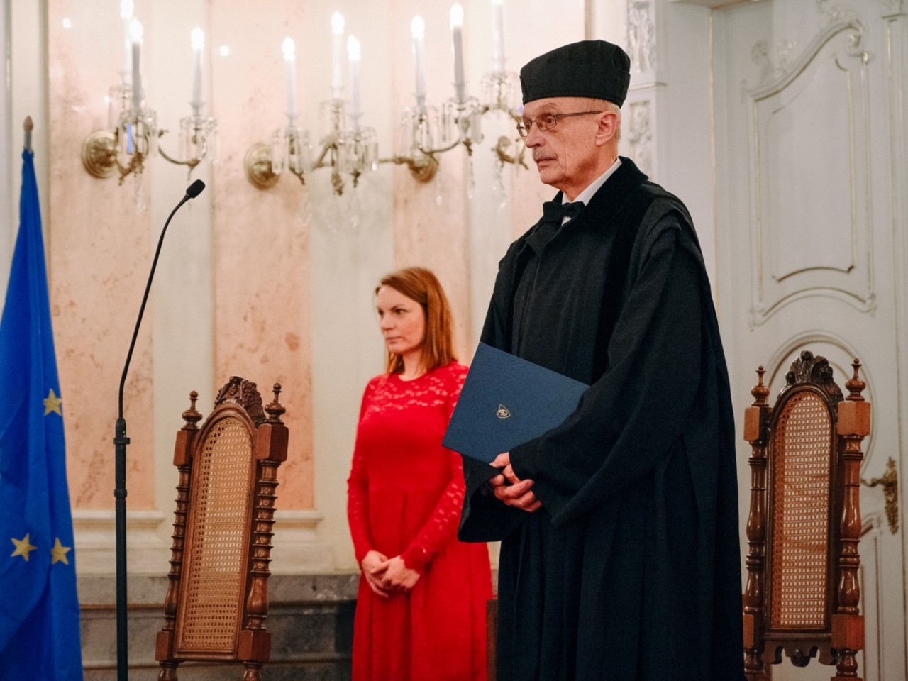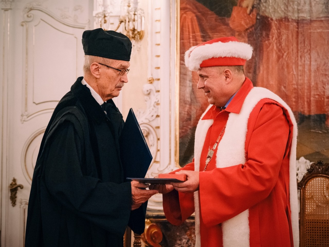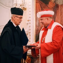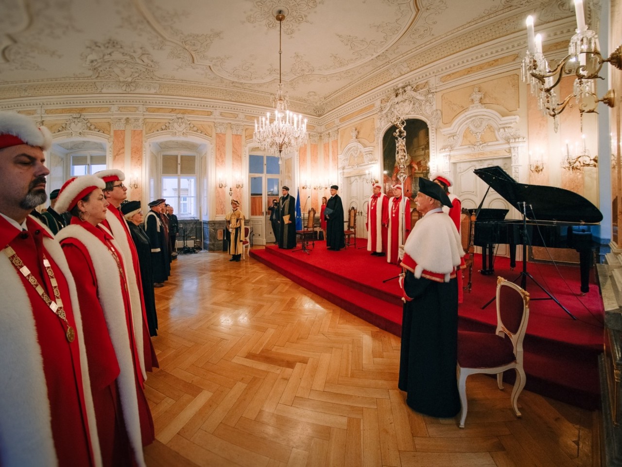 „S odstupem téměř padesáti let jsem z pražské matematicko-fyzikální fakulty dostal pozvánku na přednášku Christiana Krattenthalera s názvem ‚Hudba a matematika spolu souvisí. Je tomu skutečně tak?‘. Když Christian zjistil téma mé diplomové práce a zároveň dobu jejího vzniku, ptal se, z čeho jsem v roce 1971 vlastně vycházel. Poté mi poslal vůbec první práci, která k tématu vyšla v roce 1979… Nádherné je na tomto příběhu to, že profesor Jiroušek měl vizi, která se naplnila. Věřil, že symetrické polynomy nejsou mrtvý obor algebry. Mrzí mě, že jsem jeho naději, že budu v tomto oboru pokračovat, nedokázal naplnit. V kontextu té doby to opravdu nešlo. Je mi líto, že už není mezi námi a že se nemůže účastnit této pro mě velké pocty,“ uzavřel čerstvý nositel čestného doktorátu Univerzity Palackého a zároveň i její pamětní medaile.
