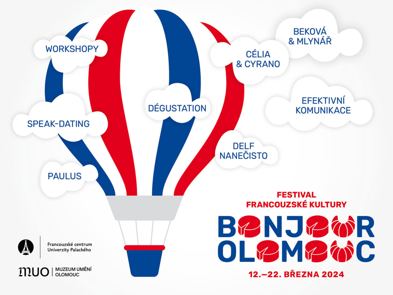 S cílem podpořit francouzský jazyk a rozšířit povědomí o francouzské kultuře pořádá Francouzské centrum Univerzity Palackého a katedra romanistiky FF UP ve spolupráci s Muzeem umění Olomouc již pátý ročník festivalu Bonjour Olomouc. Od 12. března nabídne během deseti dnů více než dvacet zajímavých akcí.