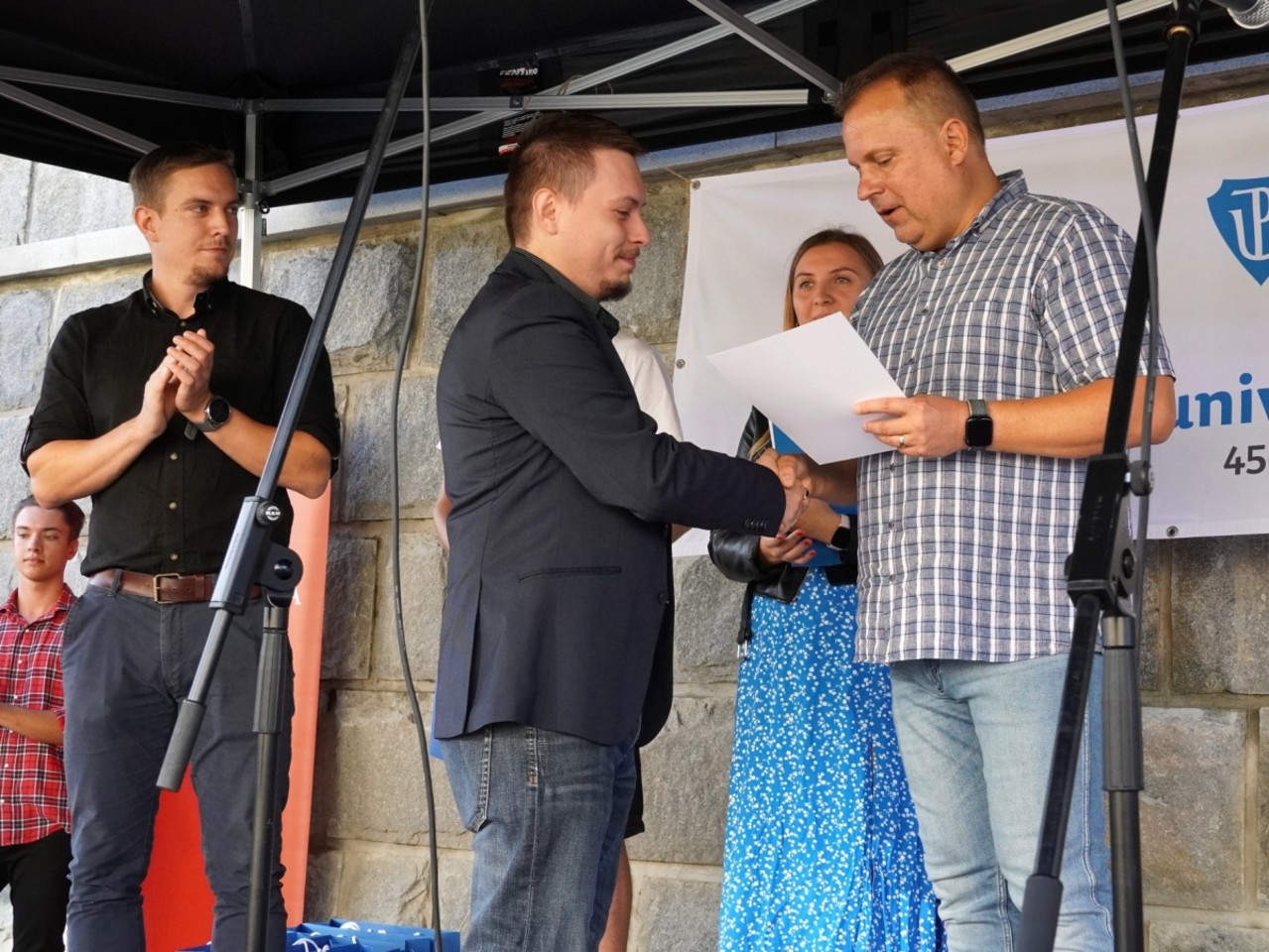 Mezi oceněnými byl také Vasyl Kapustej, student právnické fakulty, který od ruské invaze na Ukrajinu organizuje sbírky materiální pomoci pro civilní obyvatelstvo a jejich výtěžek také do své rodné země osobně několikrát zavezl. „Moc si ceny rektora vážím. Ale chtěl bych zdůraznit, že to není jen ocenění mě jako jednotlivce, ale celé naší fakulty, která mě v činnosti podporuje a podílí se na ní,“ řekl student s tím, že se více než cesty do válečné oblasti bojí blížících se státnic. „Nejblíže jsme byli asi 2,5 kilometru od Rusů, ale většinou nejezdíme takto blízko. Vždy mám doprovod ze strany ukrajinských vojáků, kteří vědí co a jak, takže se nebojím. Je to moje rodná země. Ukrajinu chci podporovat až do jejího vítězství,“ doplnil.