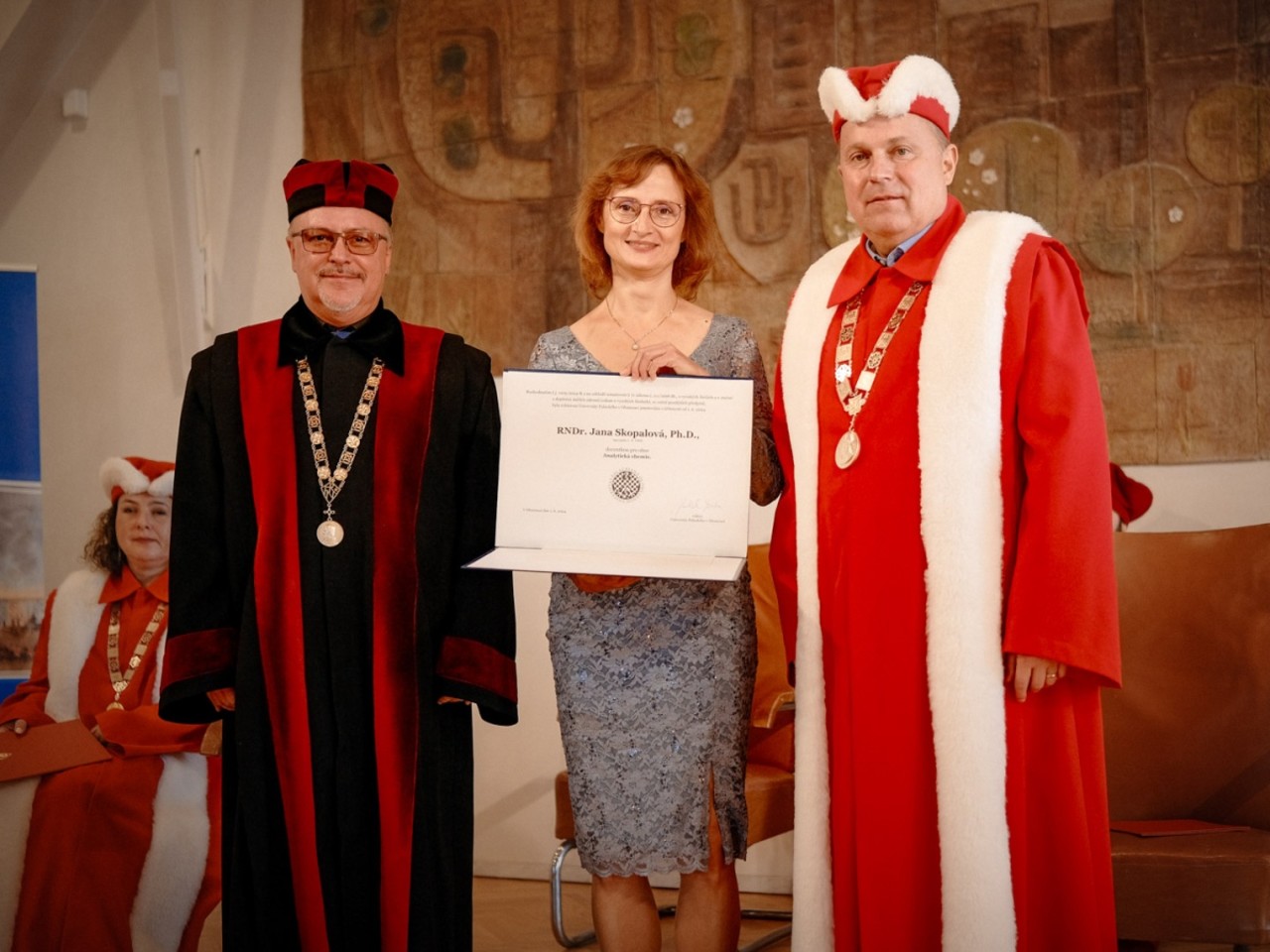 Sedm desítek mladých vědkyň a vědců převzalo v aule filozofické fakulty své diplomy a za přítomnosti partnerů a příbuzných tak udělalo slavnostní tečku za svým doktorským studiem. Společně s čerstvými držiteli titulu Ph.D. obdrželi své jmenovací dekrety také nové docentky a docenti. Jmenováni byli: Jana Skopalová z PřF, Jan Čížek a Richard Změlík z FF, Lenka Bartošíková, Magdalena Koťová, Jan Schovánek a Lubomír Tulinský z LF a Jan Chrastina z PdF. Gratulujeme!