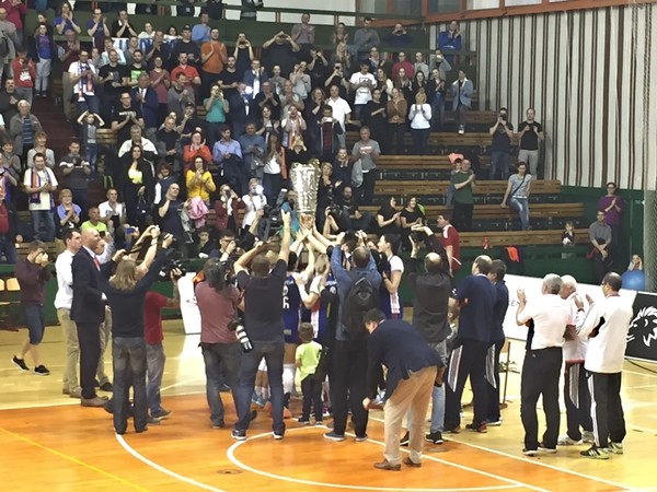 Mistryně! Volejbalistky Univerzity Palackého smetly ve finálové sérii play-off obhájkyně titulu z Prostějova a po třiadvaceti letech se tak staly mistryněmi České republiky. Zvítězily ve třech zápasech. Ten rozhodující získaly před zaplněnou Sportovní halou UP opět bez ztráty setu. Na palubovku přišla v závěru utkání i loučící se Jana Napolitano Šenková. Druhou hráčkou, která ohlásila konec kariéry, je Nikol Sokolová-Sajdová. Foto: Milada Hronová