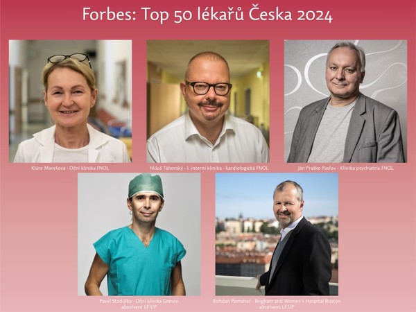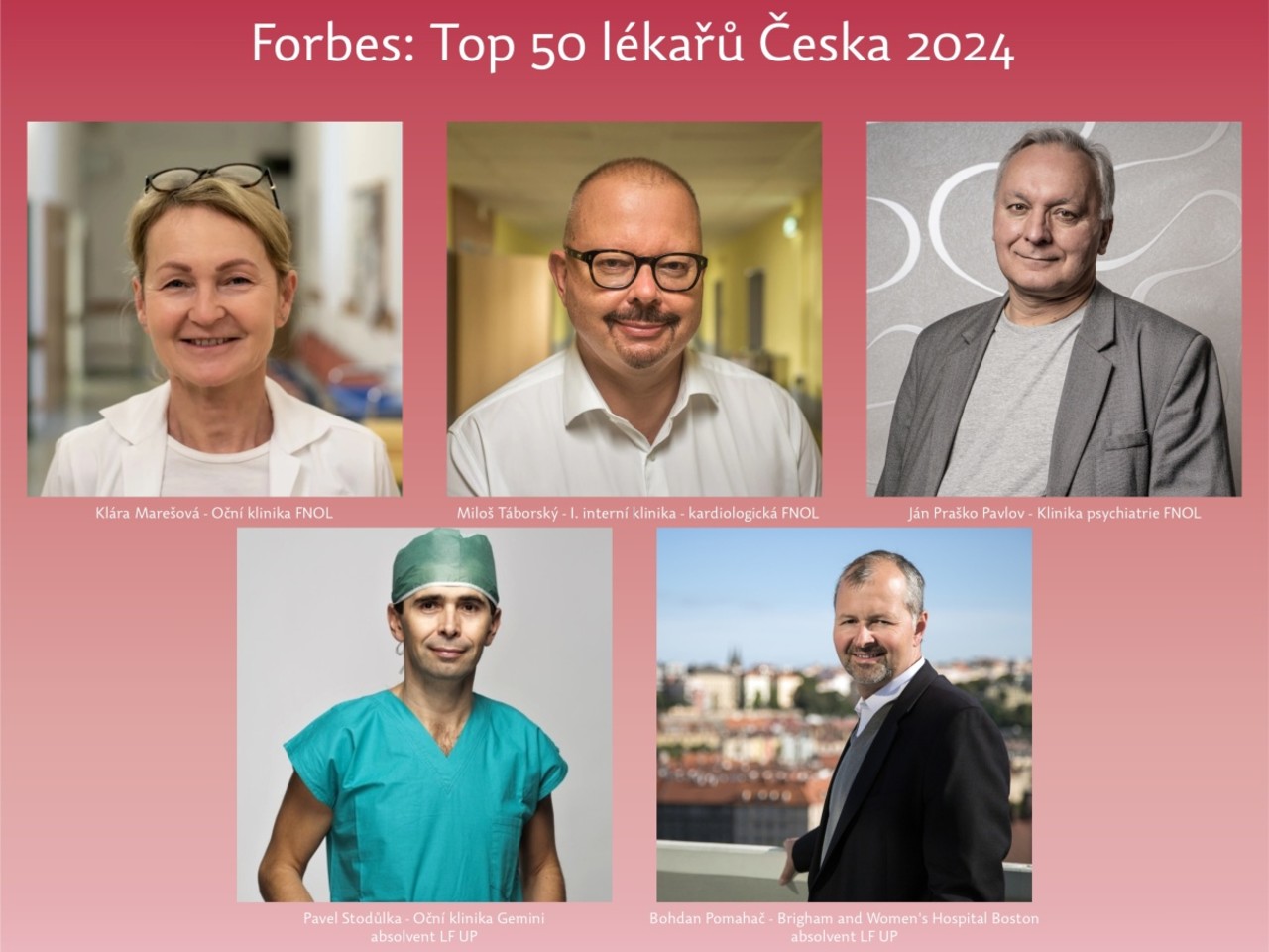 Mezi padesáti nejlepšími českými lékaři, jejichž žebříček zveřejnil magazín Forbes, je i pět osobností spojených s Lékařskou fakultou UP. Jako špičkový zástupce svého oboru byla vybrána přednostka Oční kliniky LF UP a Fakultní nemocnice Olomouc Klára Marešová, také kardiolog Miloš Táborský, který vede I. interní kliniku – kardiologickou LF UP a FNOL, a Ján Praško Pavlov, který je mimo jiné zástupcem přednostky pro výuku na Klinice psychiatrie LF UP a FNOL a je spojen také s Centrem duševní rehabilitace v Berouně. Dalšími dvěma top lékaři jsou absolventi LF UP plastický chirurg Bohdan Pomahač působící na Yale University a oční chirurg a primář oční kliniky Gemini Pavel Stodůlka. Celý žebříček včetně použité metodiky je k nahlédnutí zde.