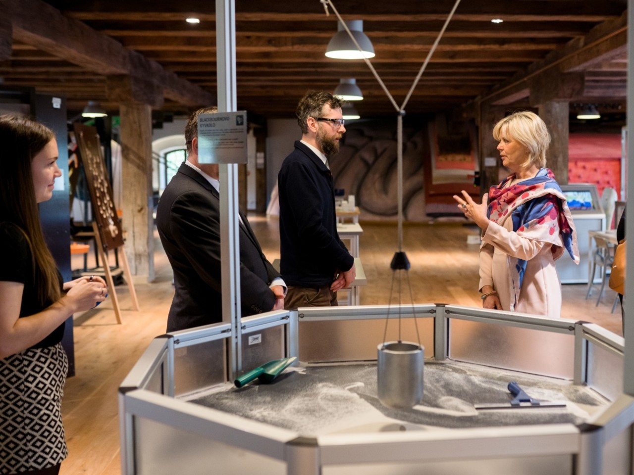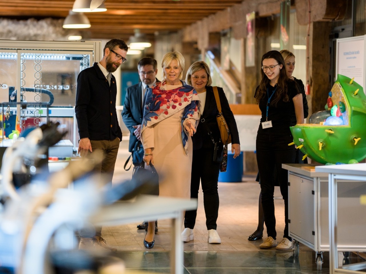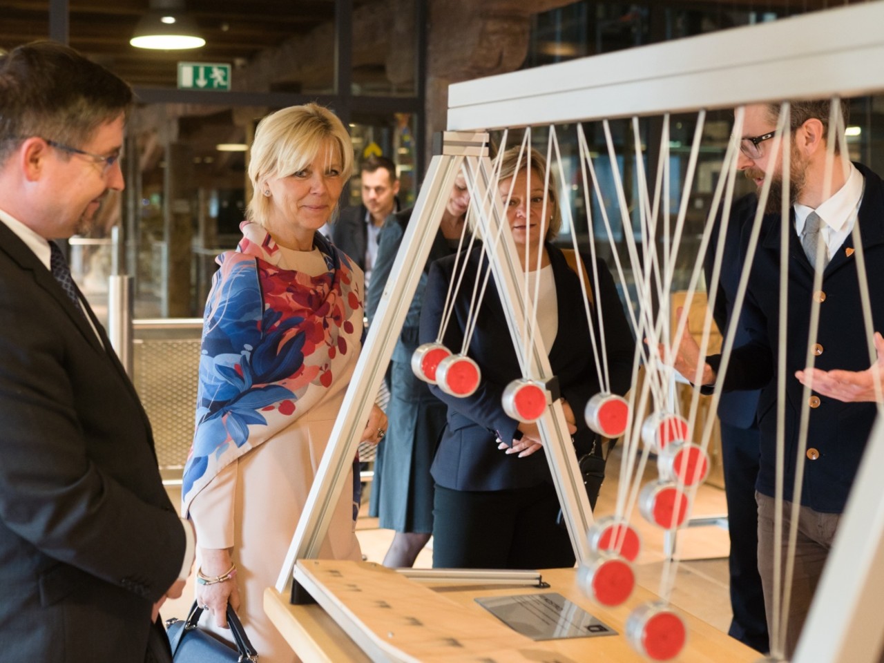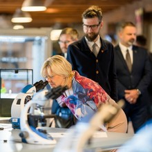 Po otevření centra se přesunula na prohlídku Pevnosti poznání. Po krátkém úvodním seznámení s její armádní i civilní historií si prohlédla jednotlivé expozice. „Zaujaly ji nejen dílčí exponáty jako vlnostroj nebo model mozku, u kterých jsme se krátce zastavili, ale především celková mise Centra popularizace přírodovědecké fakulty, která úzce souvisí se společensky odpovědnou rolí univerzity,“ řekl ředitel Pevnosti poznání Matěj Dostálek.