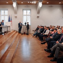 Prezidenta na akademické půdě Univerzity Palackého přivítal prorektor pro strategii a vnější vztahy a statutární zástupce rektora Michal Malacka.