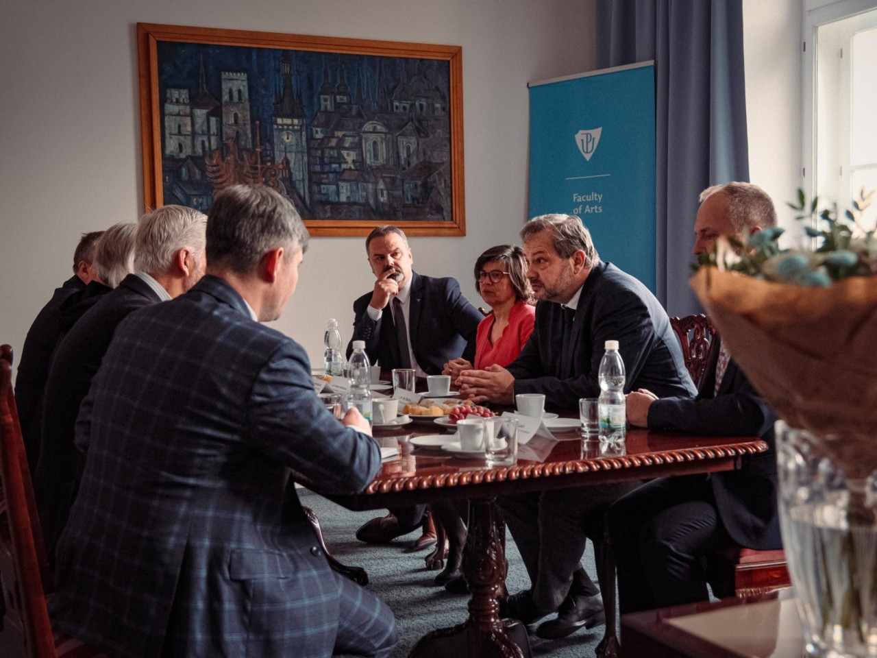 Prezident České republiky Petr Pavel navštívil filozofickou fakultu za doprovodu svého nejbližšího týmu. V debatě, již moderoval Ondřej Molnár, předseda Akademického senátu FF UP, a Denisa Thernerová z Politologického klubu UP, se hovořilo o mezinárodní i vnitrostátní politice, současné bezpečnostní situaci, o současné efektivitě či naopak těžkopádnosti fungování společenství, jakými jsou OSN, NATO i EU, či o umělé inteligenci. Zhruba hodinová debata v prostorách filozofické fakulty se samozřejmě nemohla vyhnout ani palčivému tématu, jakým je neuspokojivé financování vysokých škol, respektive podfinancování humanitních a sociálněvědních oborů. Prezident Petr Pavel v této debatě zdůraznil potřebu řešit jej jak v celém kontextu vysokého školství, tak v širším kontextu dlouhodobější vize České republiky.
