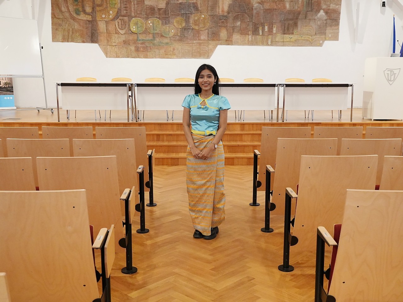 „Nejdříve mi studium přerušila pandemie covidu-19. To bylo ve druhém ročníku magisterského studia mezinárodních vztahů. Původní plán, že diplomovou práci odevzdám v roce 2021, nevyšel. V tomto roce totiž mou zemi zasáhl vojenský převrat a začalo období tmy. V Myanmaru upadá ekonomická stabilita i úroveň vzdělávání. Každý, kdo může, odjíždí za vzděláním například do Thajska, Malajsie či Singapurské republiky. Tak jsem učinila i já. Přemístila jsem se do Kambodži, která má kvalitní vzdělávání. S podporou stipendia z Mobilního programu EU pro Myanmar (EMPM) pokračuji ve studiu mezinárodních vztahů na jedné z národních univerzit, Royal University of Phnom Penh (RUPP).“