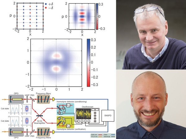 An international team of scientists has experimentally created the world’s first Gottesman-Kitaev-Preskill (GKP) quantum codes propagating light, opening up the possibility of constructing optical quantum computers which offer exponential speed-up over classical computer technology. The unique experiment is a culmination of long-term collaboration between the scientists from the University of Tokyo, Palacký University Olomouc, and the University of Mainz. The results were published in Science.