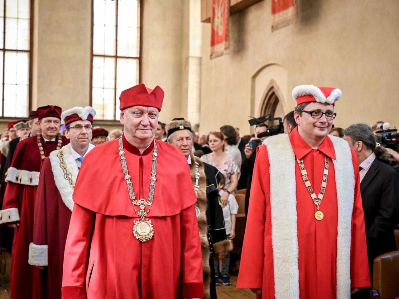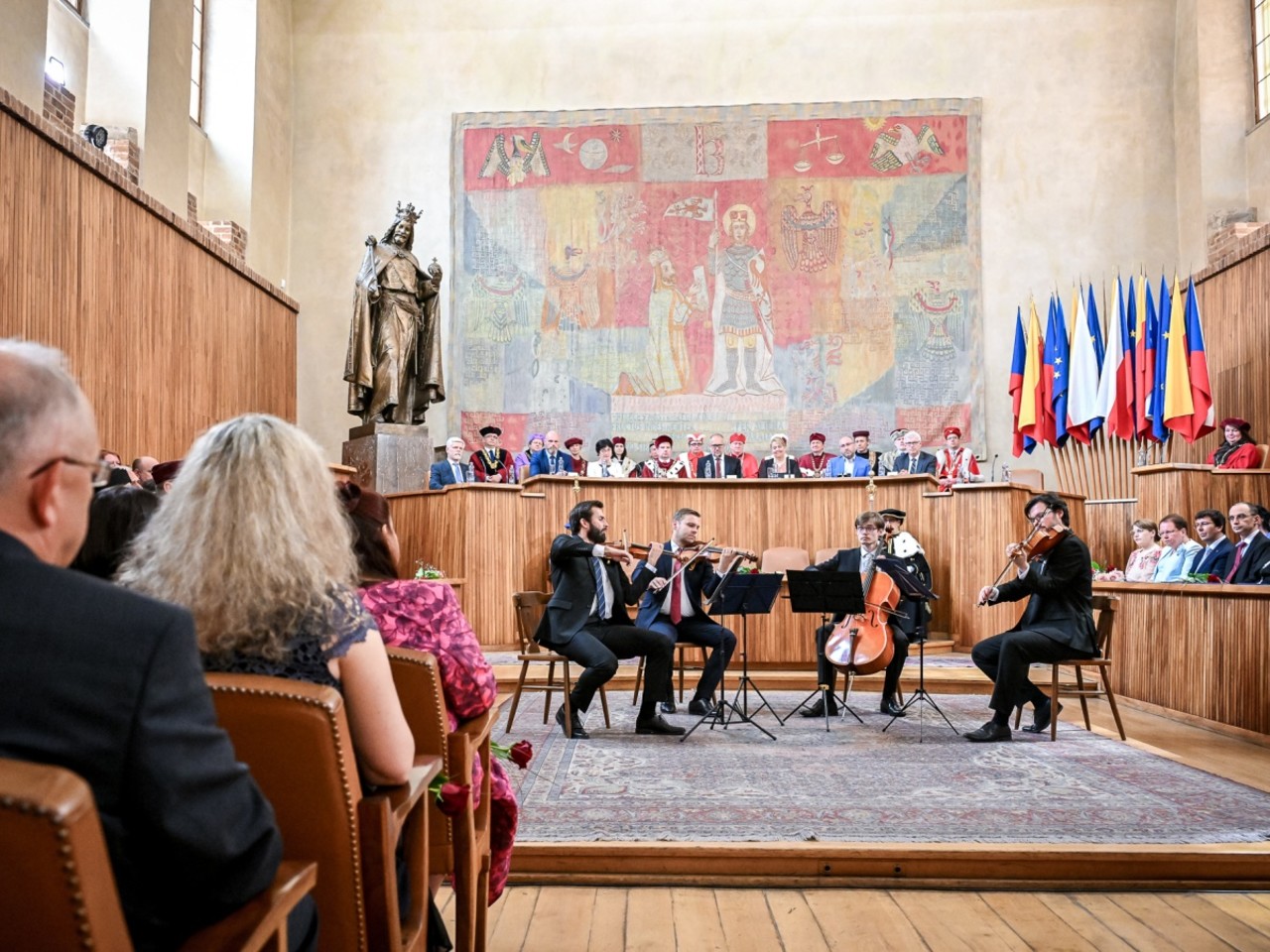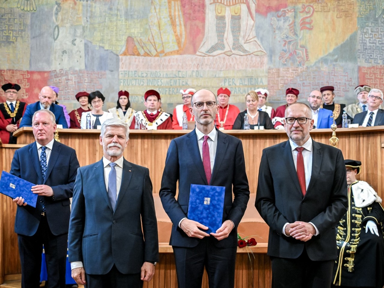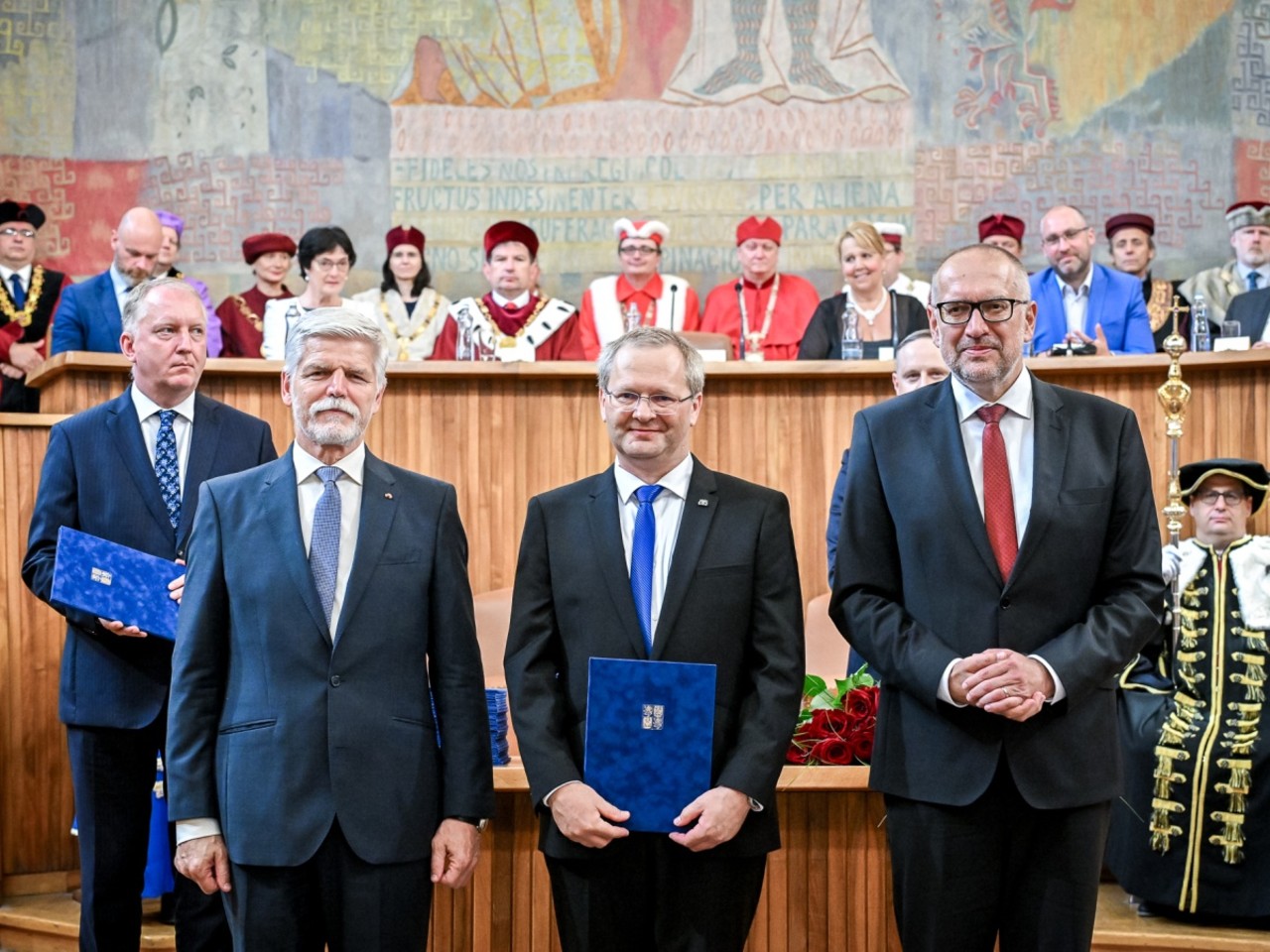 Zatímco v posledních letech nové profesorky a profesoři přebírali své jmenovací dekrety z rukou ministra školství, letošní slavnostní akt v Karolinu znamenal návrat k dřívější zvyklosti. Prezident republiky Petr Pavel totiž jmenování profesorů nejen stvrdil svým podpisem, ale dekrety dotyčným také osobně předal.