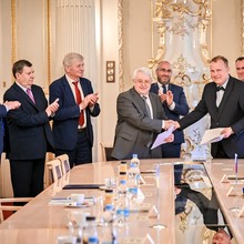 Jaroslav Miller, UP Rector Emeritus and current Deputy Minister of Education, Youth and Sports, received an honorary doctorate from the National Pedagogical Drahomanov University in Kyiv at a ceremony this week. It was personally presented to him by the rector of the Ukrainian university, Viktor Andrushchenko. The meeting was also attended by current UP Rector Martin Procházka, who signed a Memorandum of Cooperation with his Ukrainian counterpart.