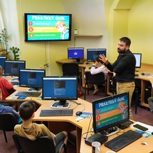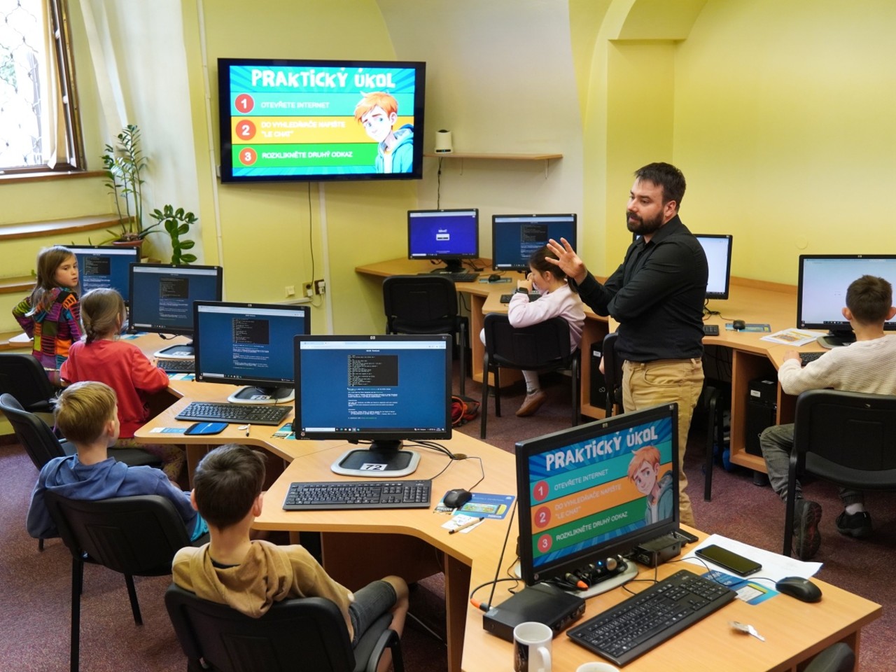 Další skupinky zamířily do Knihovny UP na Zbrojnici, kde jednak objevovaly fascinující svět umělé inteligence s hravým průvodcem AI Nezbezdníčkem a jednak na ně v Britském centru čekala bojovka mezi regály plnými knih v angličtině. Děti si také mohly prohlédnout pracoviště svých rodičů a dát si oběd v menze.