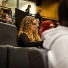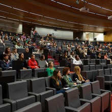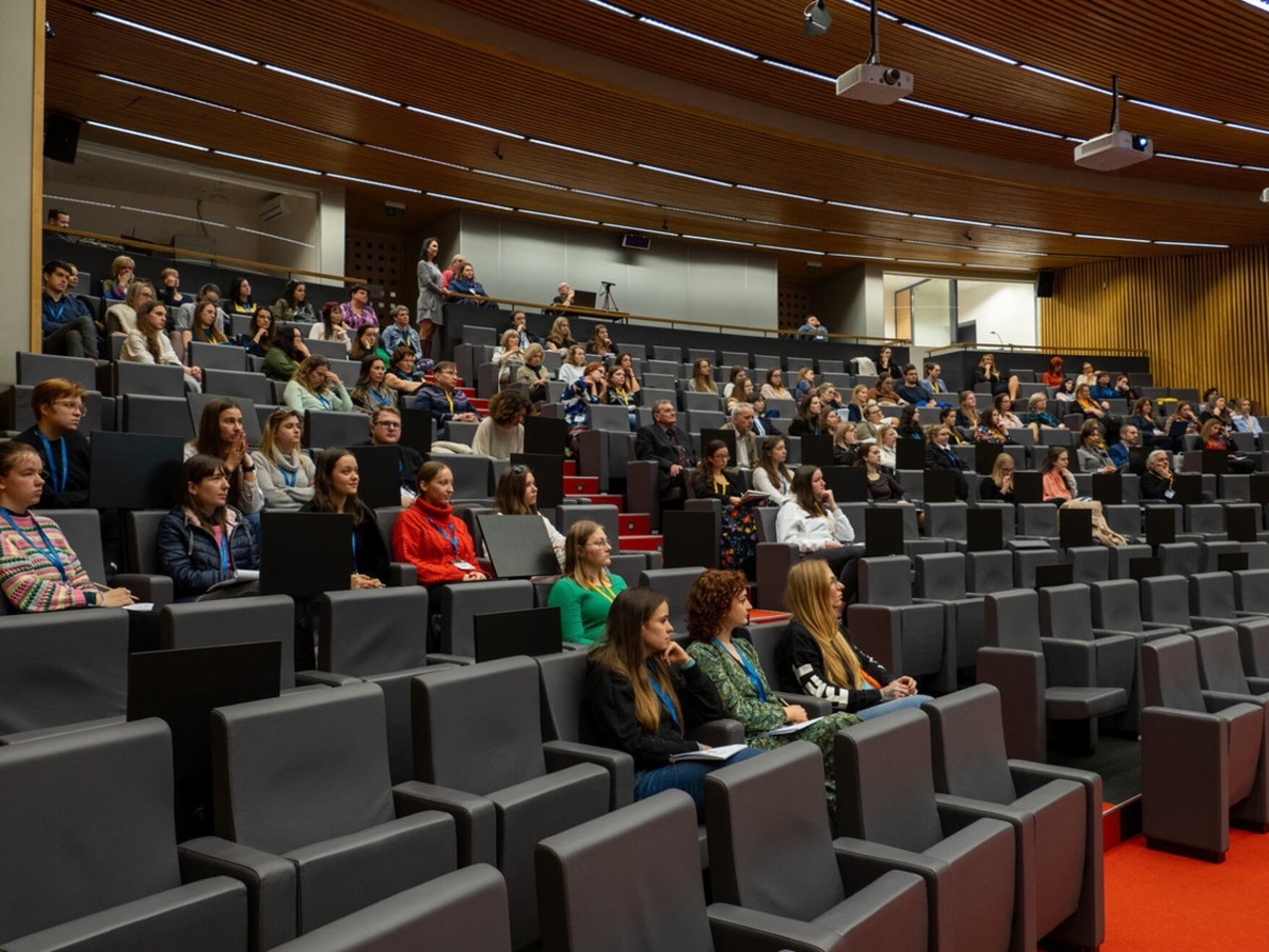 Následující hodiny prvního dne konference byly vyplněny nejen odbornými příspěvky přednesenými domácími i zahraničními účastníky, ale i workshopem pořádaným pedagogy katedry aplikovaných pohybových aktivit FTK UP a filmovým představením Tloskov Fiction doprovázeným besedou s herci.