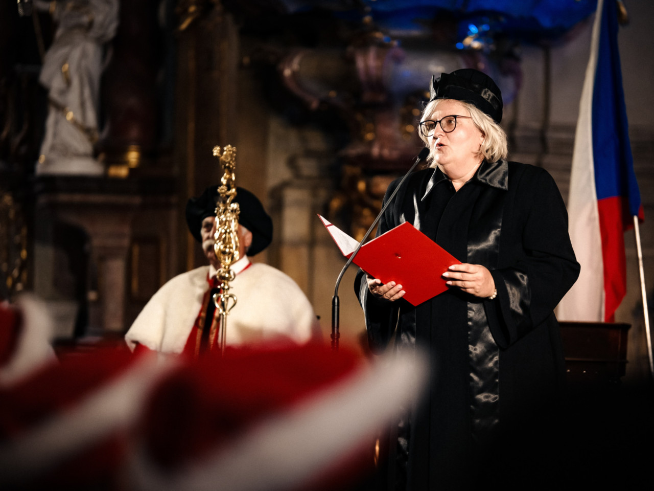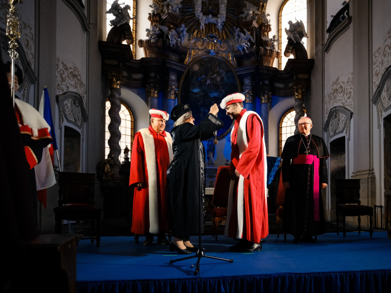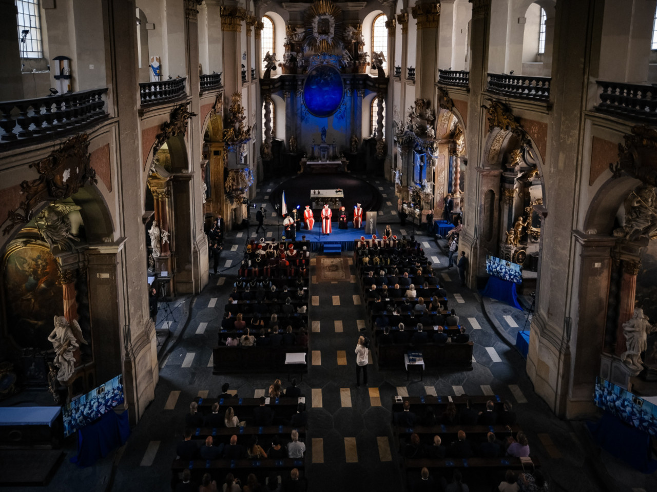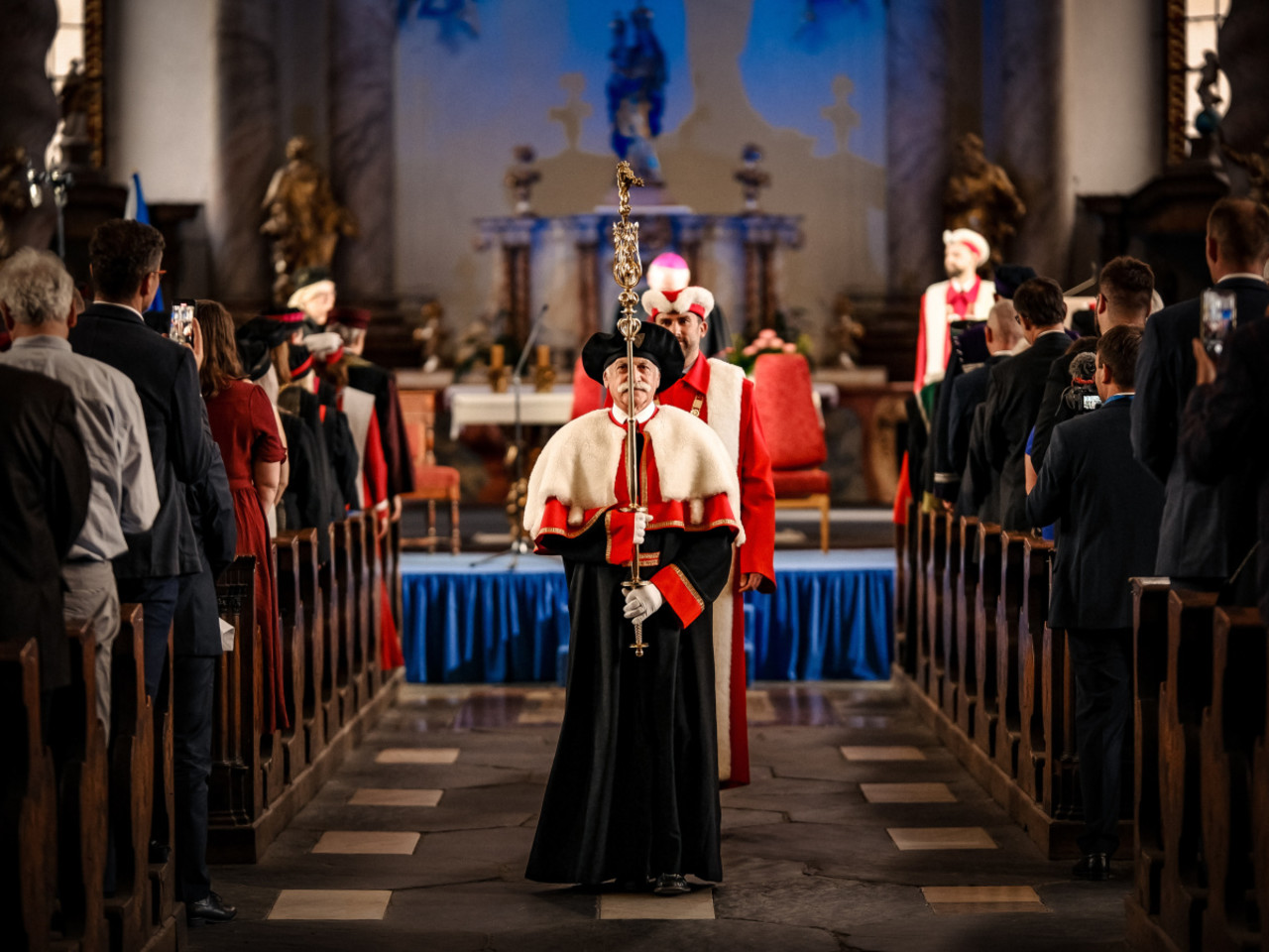 Slavnostní ceremoniál se uskutečnil v kostele Panny Marie Sněžné, který v 18. století postavili pro potřeby univerzity jezuité, zakladatelé vysokého učení v Olomouci.