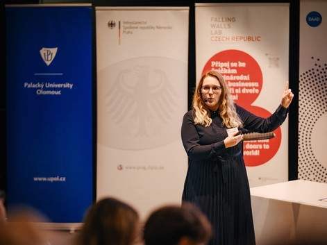 Čtrnáct finalistů dostalo tři minuty a dva slidy prezentace, aby srozumitelně představili svůj výzkum, který boří zdi. To je myšlenka soutěže Falling Walls Lab, jejíž celosvětové finále se koná vždy v Berlíně při příležitosti pádu Berlínské zdi. Během večera 15. září se v Národní technické knihovně v Praze představili také čtyři vědkyně a jeden vědec z UP (psali jsme zde).