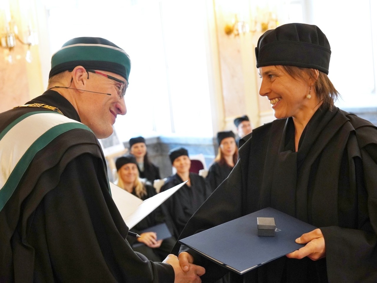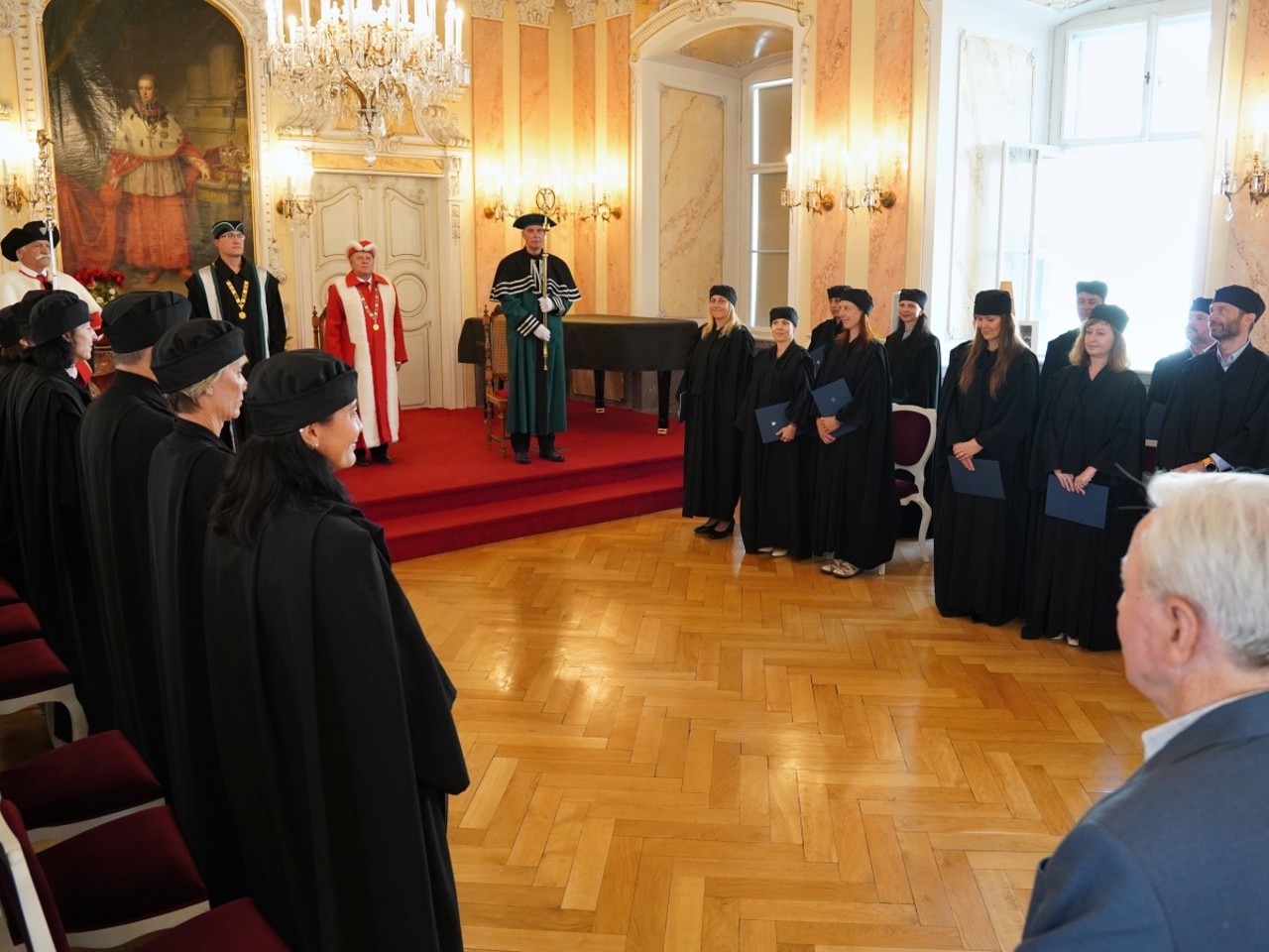 Zatímco setkání v Neředíně se neslo v neformálním a uvolněném duchu, stříbrná promoce, která večernímu veselí předcházela, měla vše, co k akademickému slavnostnímu aktu patří. V Arcibiskupském paláci převzalo pamětní diplomy čtyřiadvacet absolventek a absolventů FTK z let 1998–2000.