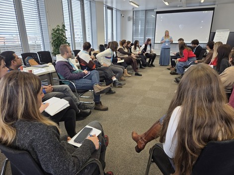 Čtvrtek byl jedním z nejbohatších a nejintenzivnějších dnů programu. Dopoledne proběhl workshop doc. Petra Tarkowského (PřF a CATRIN), který přiblížil rostlinnou fyziologii a mechanismy adaptace na stresové podmínky, což bylo pro účastníky důležité nejen z hlediska vědeckého poznání, ale také praktického využití v zemědělství. Následovaly inspirativní prezentace prof. Floriana Freitaga a prof. Barbary Buchenau (oba UDE), jež v rámci projektu City Scripts představili úspěšné příklady zelených měst z Německa a Francie, čímž nabídly mezinárodní srovnání strategií udržitelného rozvoje měst. Odpoledne se uskutečnila 3MT judges coaching session vedená doc. Pavlínou Flajšarovou, která připravila akademiky na roli porotců v závěrečné soutěži. Podle zpětné vazby účastníků obou BIPů byl skutečným vrcholem praktický workshop dr. Veroniky Tomoszkové (PF) zaměřený na environmentální právo. Díky jejímu interaktivnímu a srozumitelnému přístupu účastníci pronikli do komplexních legislativních rámců a diskutovali o konkrétních příkladech z praxe, což zanechalo silný dojem a přispělo k hlubšímu porozumění právním aspektům udržitelnosti napříč různými obory a zeměmi.