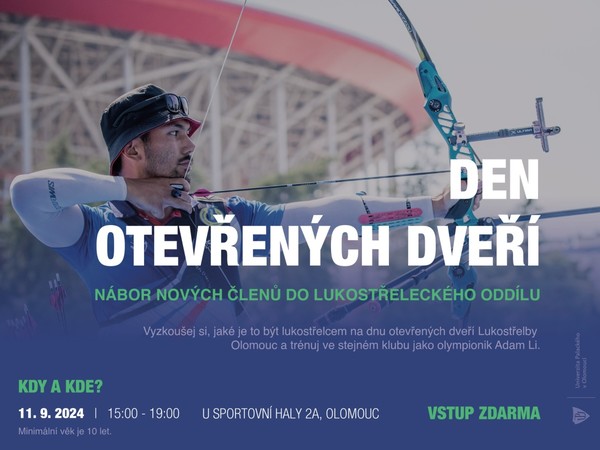 Lukostřelba Olomouc, oddíl sportovní lukostřelby UP, jehož členem a trenérem je i účastník letošních olympijských her Adam Li, pořádá ve středu 11. září od 15 do 19 hodin den otevřených dveří na střelnici v podkroví loděnice za Sportovní halou UP. Zároveň proběhne i nábor nových členů do kroužku a oddílu. Více zde.