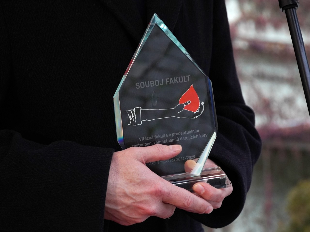Zástupci vítězných fakult si krásné skleněné plakety převzali na pódiu na nádvoří Zbrojnice během letošního Punče s rektorem pro zaměstnankyně a zaměstnance UP. Za přírodovědeckou fakultu cenu převzal pedagog a prezident Českého červeného kříže Marek Jukl, za fakultu zdravotnických věd pak děkan Jiří Vévoda a studentská senátorka Hana Mrnuštíková. Všem, kteří se do letošního souboje fakult zapojili, poděkovala z pódia primářka transfuzního oddělení Fakultní nemocnice Olomouc Dana Galuszková.