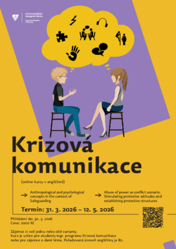 Zaměření: mezilidské krize. Studenti porozumí dynamice konfliktů, které vedou k obviňování a ztrátě společného cíle, a naučí se, jak v těchto situacích efektivně komunikovat. Důraz je kladen na schopnost analyzovat, připravit a realizovat krizovou komunikaci, rozpoznat eticky problematické momenty a hledat společnou řeč i napříč kulturními či náboženskými rozdíly.