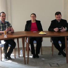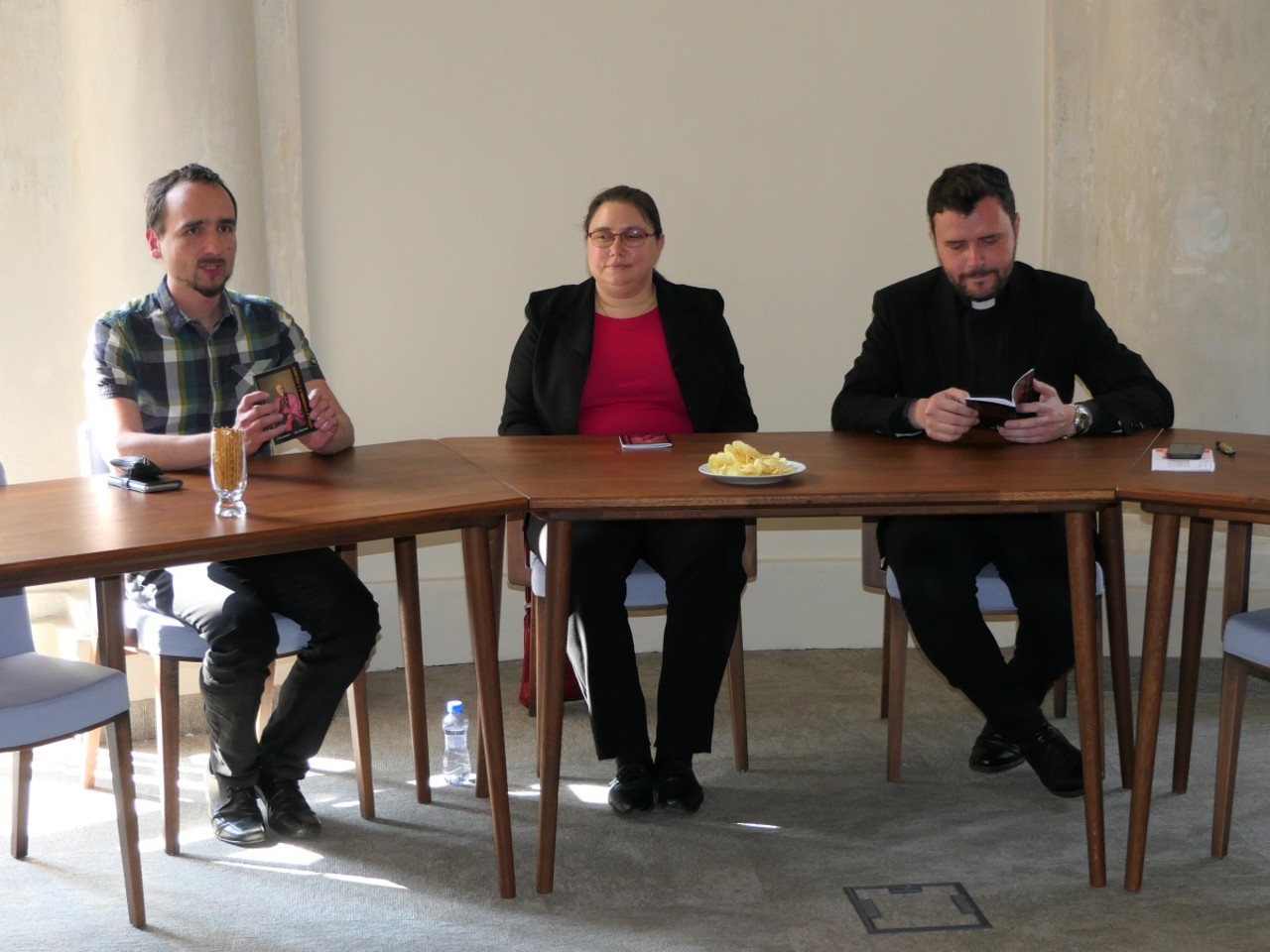Obálka publikace a záběry z jejího představení na půdě CMTF UP.