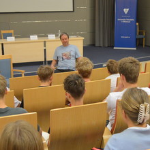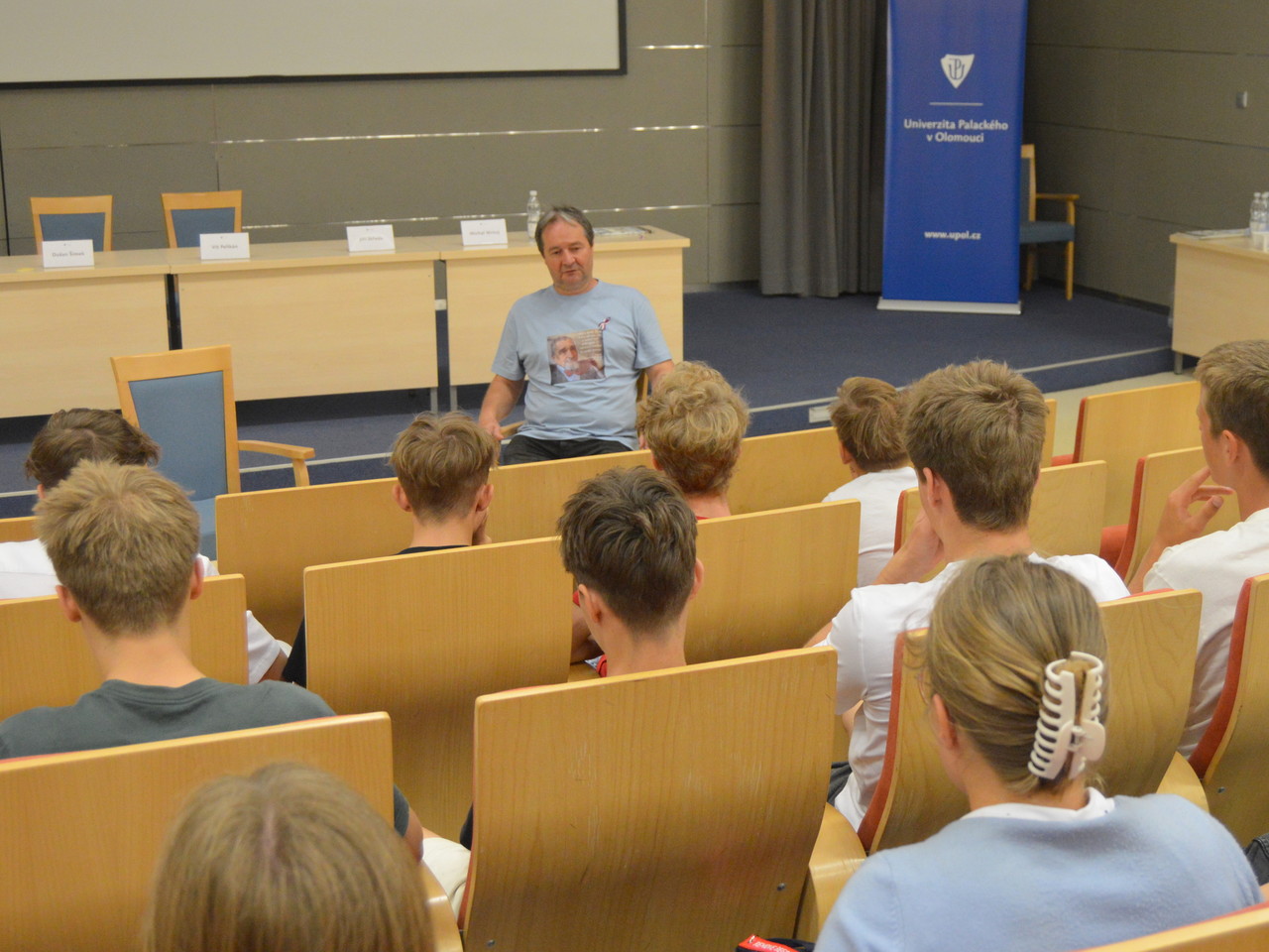 Na 150 středoškoláků na PF UP přivítal Pavel Petr, proděkan pro vnější vztahy a investice. „Jsem rád, že vidím tolik mladých lidí, kteří se zajímají a třeba se jednou stanou studenty naší fakulty, univerzity. Možná pak během studia budete lamentovat nad tím, jak to máte těžké. Ale až uslyšíte příběhy pamětníků, zjistíte, že to, co my považujeme za problém a za neřešitelnou situaci, může být v porovnání s jejich životními zkušenostmi malicherné,“ řekl proděkan. Studenty upozornil také na paradox, kdy budova fakulty, kde se dnes vysvětluje, co je to spravedlnost, morálka a právo, byla symbolem nesvobody. V 70. a 80. letech v ní sídlil okresní výbor KSČ. „Neustále se říká, že vaše generace je pořád na sítích a nevnímá, co se kolem děje. Já tomu nevěřím. Jsem přesvědčen, že vám budoucnost není lhostejná. Chtěl bych vám popřát, ať si z dnešního dne mnohé odnesete.“